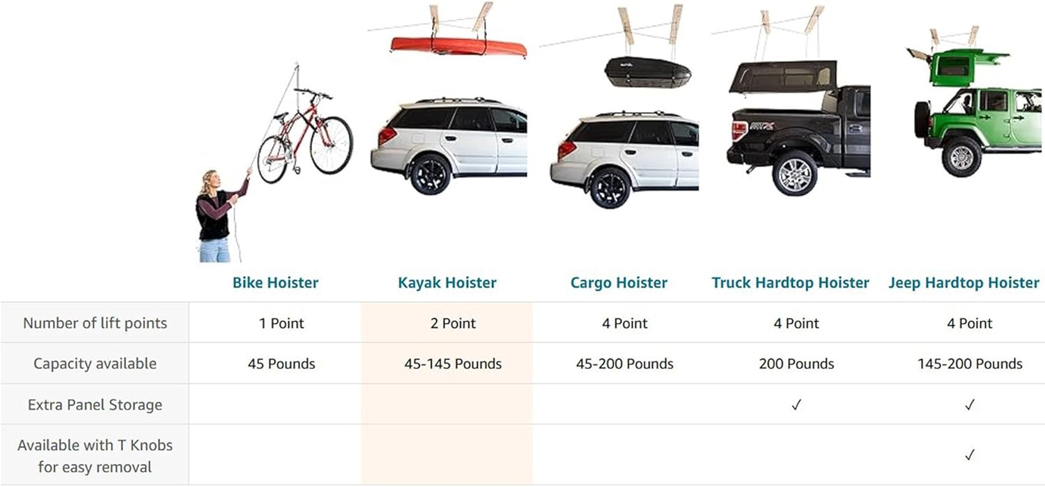 HARKEN - Truck Cap Overhead Garage Storage Hoist, Self-Leveling, Safe Anti-Drop System, Easy One-Person Operation, Smart Garage Organization