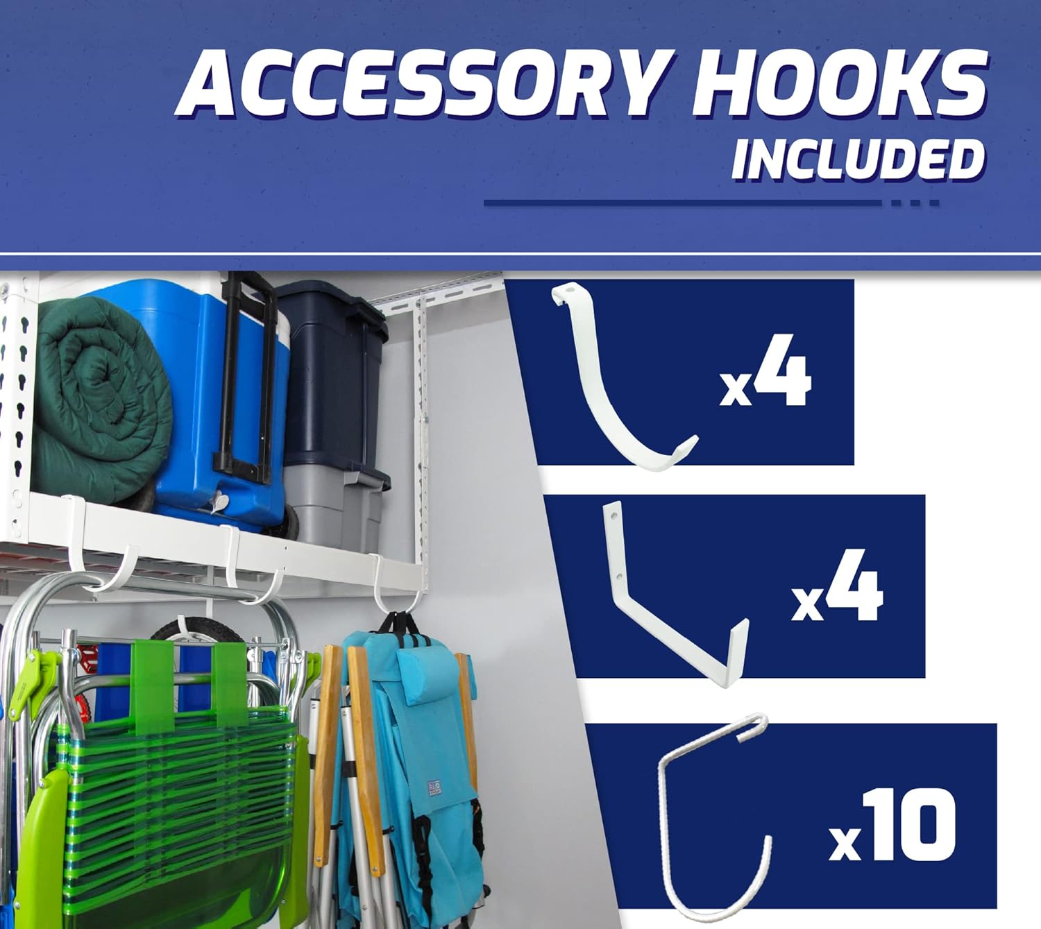 SafeRacks Overhead Garage Storage Rack, Heavy Duty Racks for Garage w/ 600 lb Capacity, Easy Garage Storage Adjustable Storage Rack Ceiling Mount Storage for Garage 4x8 White, 12"-21" (2 Pack)