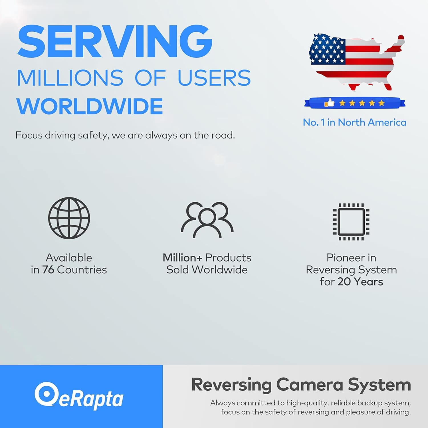 - In the Box &Two-year Warranty: 1x Backup Camera, 2x Metal Brackets, 1x AV cable ,1x Power cable ,1x Installation manual.The reversing camera comes with a two year warranty and lifetime technical support.If you find any problems with the product packaging, please feel free to contact us, we will reply to you within 24 hours. eRapta support department will always be there for any consultation.