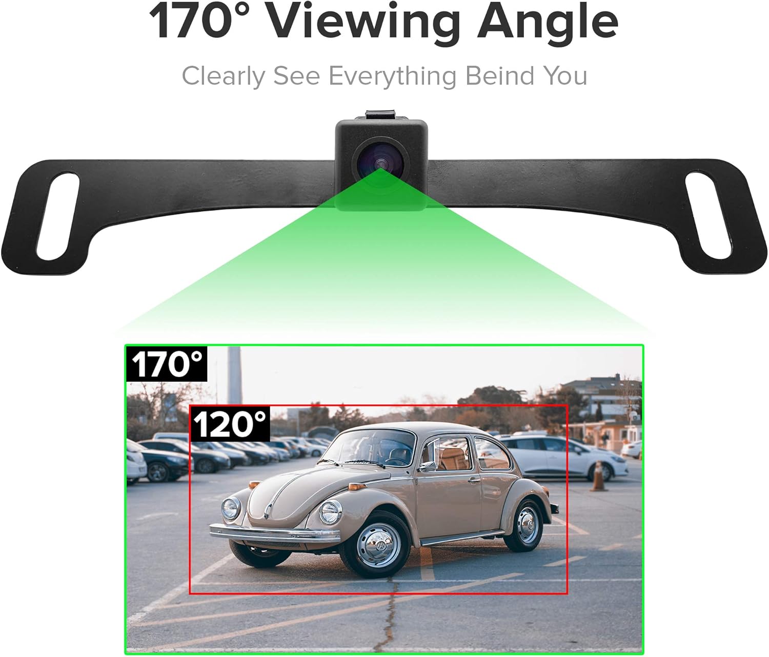 - INCLUDED BACKUP CAMERA: The rearview mirror comes with a 170° wide angle HD license plate frame backup camera. It fits behind your license plate using your existing screws, at the front or back of your car. All parts needed for installation are included and easy to set up!