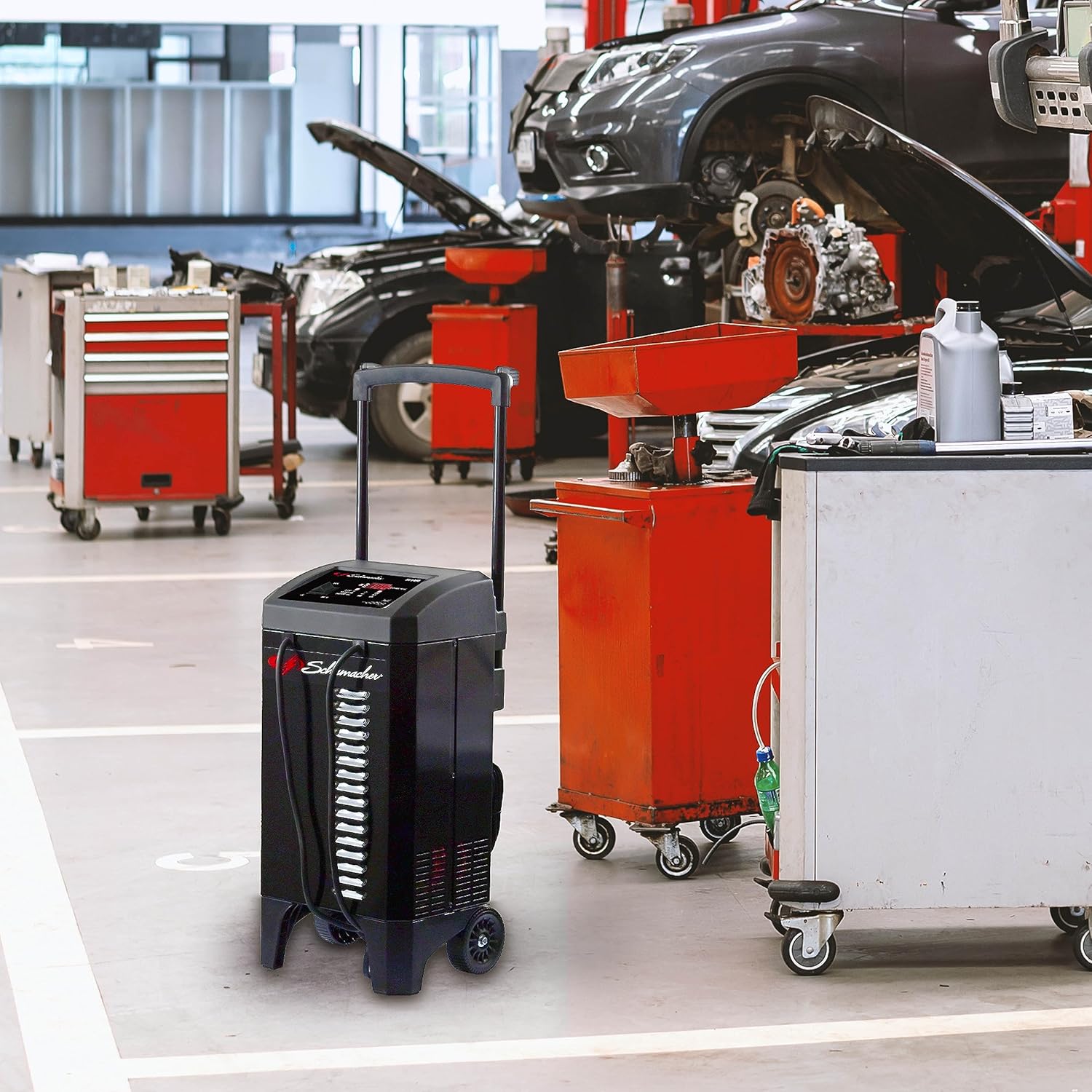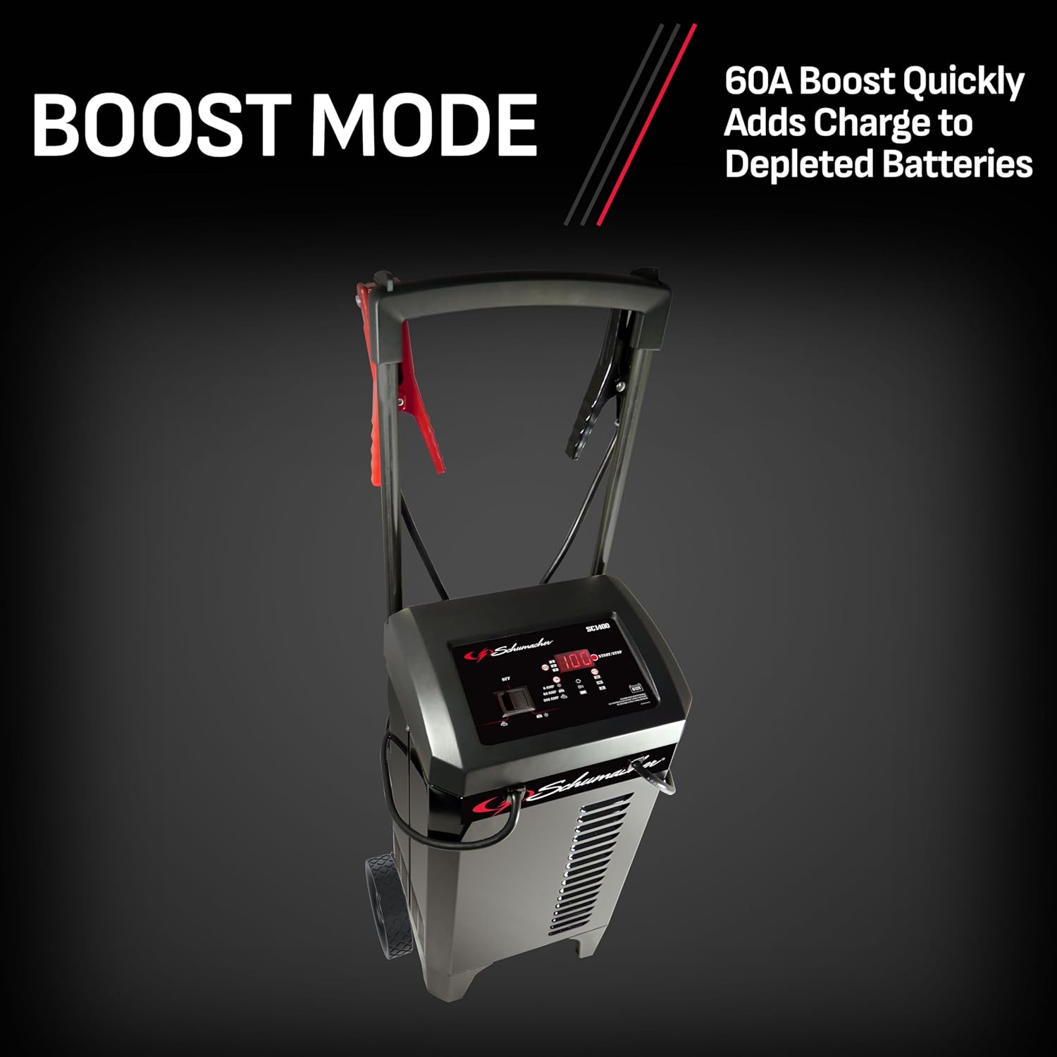 Schumacher Electric Wheeled Battery Charger and Engine Starter, SC1400, 4-in-1, Fully Automatic, 300 Cranking Amps, 60 Amp Boost Mode, 6 Volt, 12 Volt, for Car, Truck, SUV, and Marine Batteries