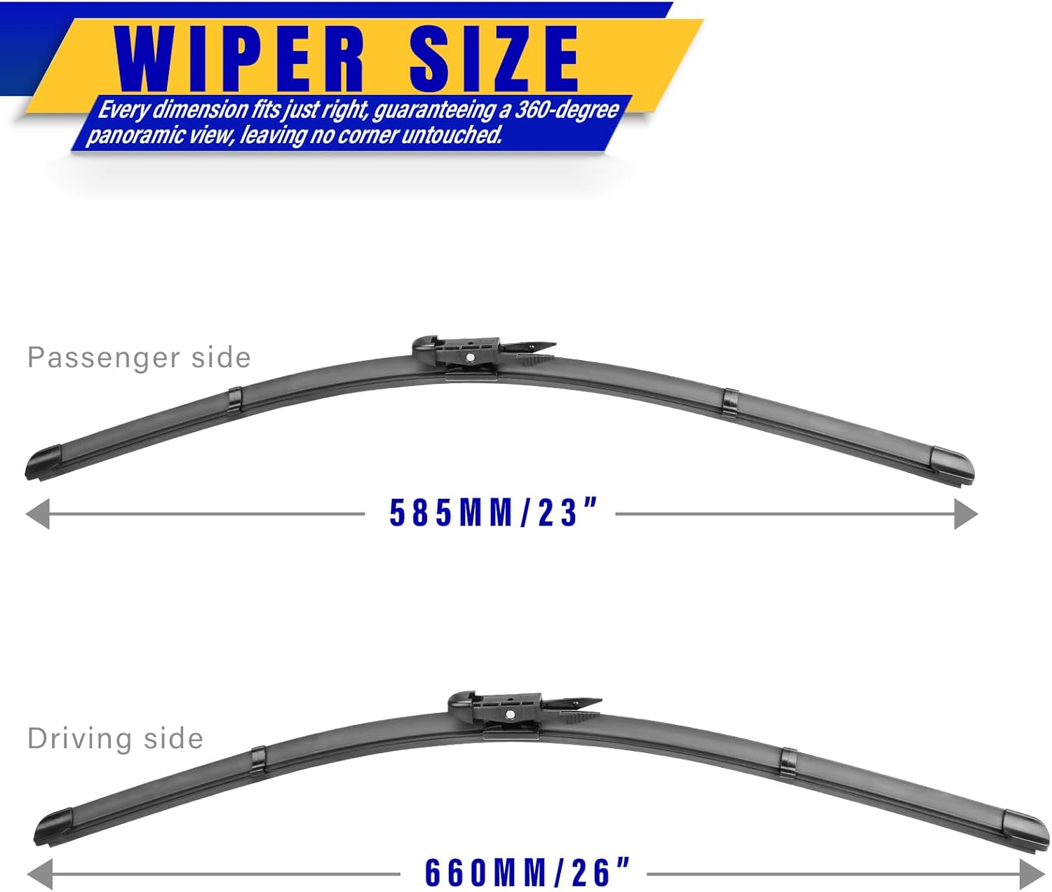 - 【WORRY-FREE SHOPPING】 2Pcs wiper blades 26"+23" and Instruction Manual. One Year warranty! Refund or return anytime in one year, Long life, smooth engagement.