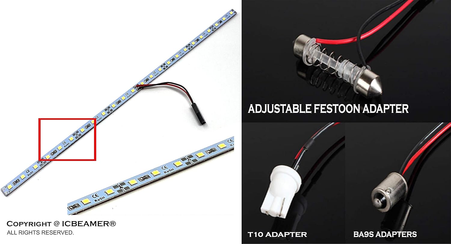 - ⭐ Fit Like a Glove: This LED strip comes with (3) versatile bulb fitment adapters and an extension cord, making it the perfect match for nearly any car, SUV, or cargo area OEM lamp socket. No matter your vehicle, we've got you covered!