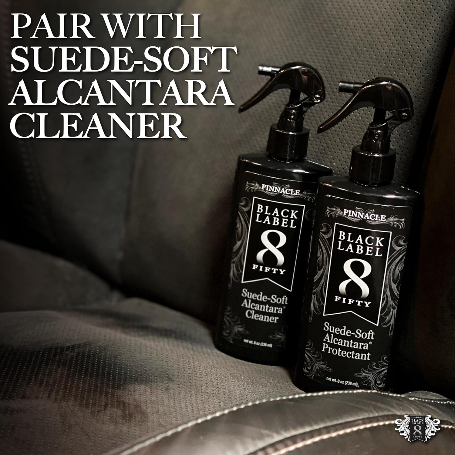 Pinnacle Black Label Suede-Soft Alcantara Protectant | Advanced Spill & Stain Protection for Micro-Suede & Alcantara | Clear Finish | PBL-275 | 8 oz