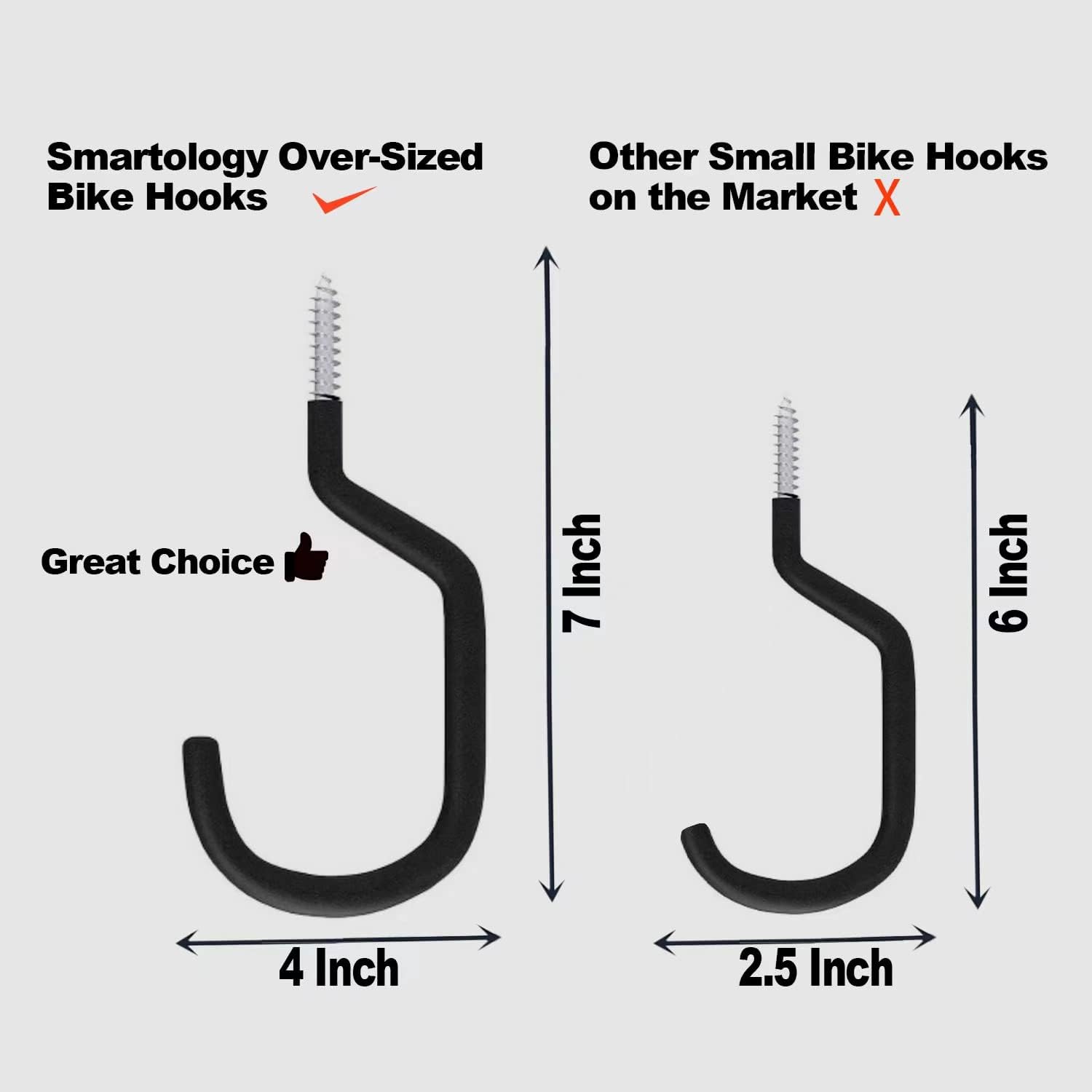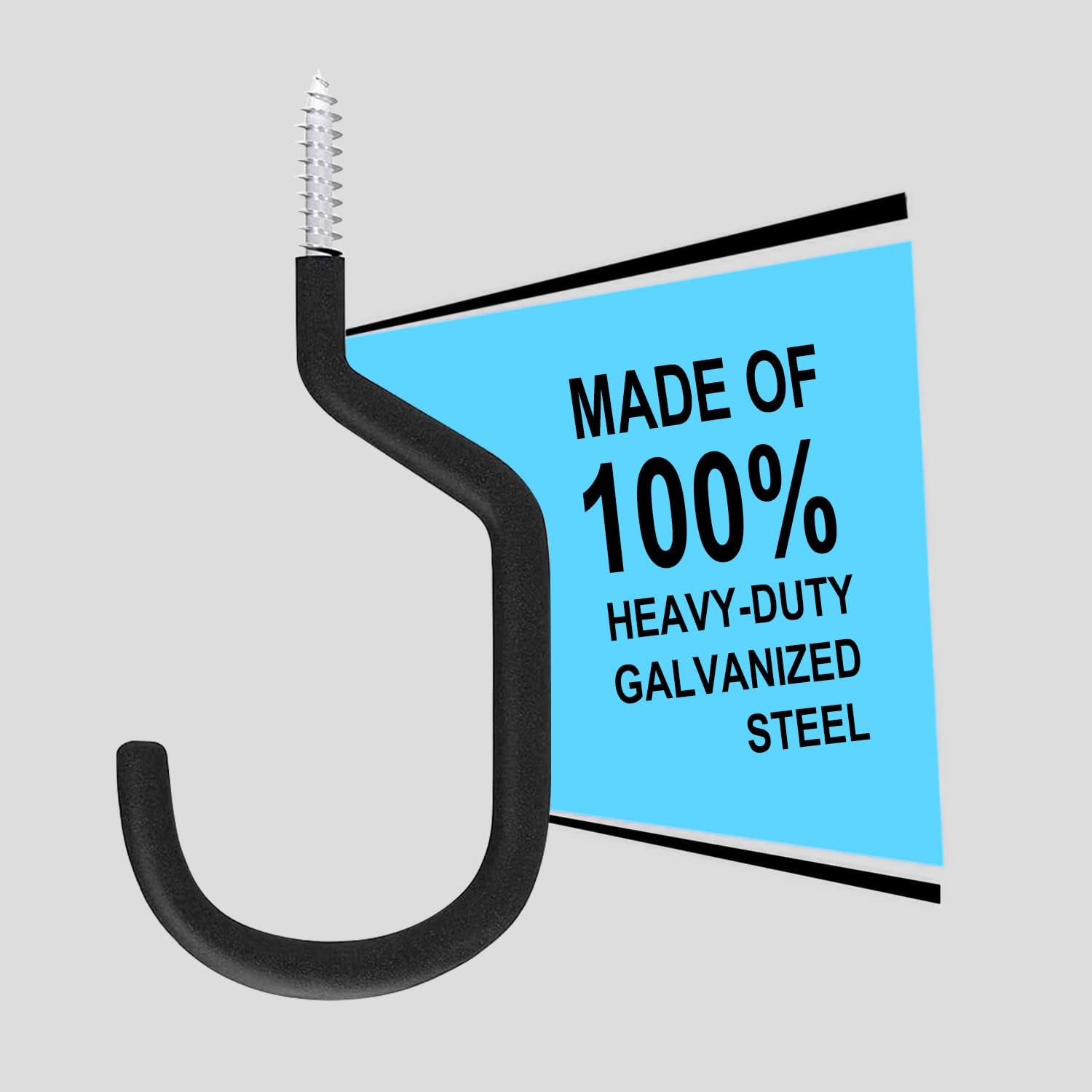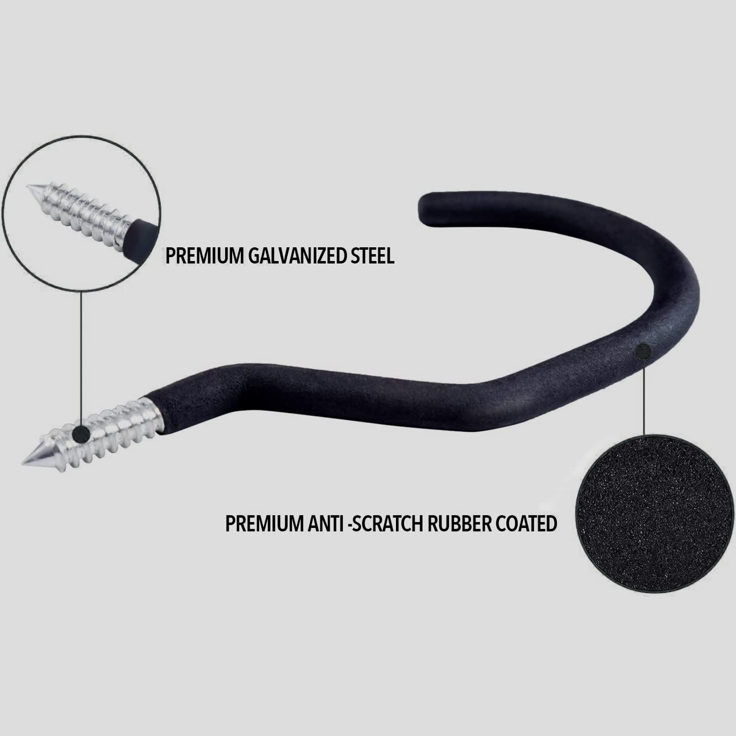 - ✅Premium Quality: Each hook is constructed from heavy duty galvanized tough steel with non-slip soft matt vinyl coating to prevent scratches for your items. Each hook hold up to 60 lbs. Extra Large-Largest screw-in bike hook on the market