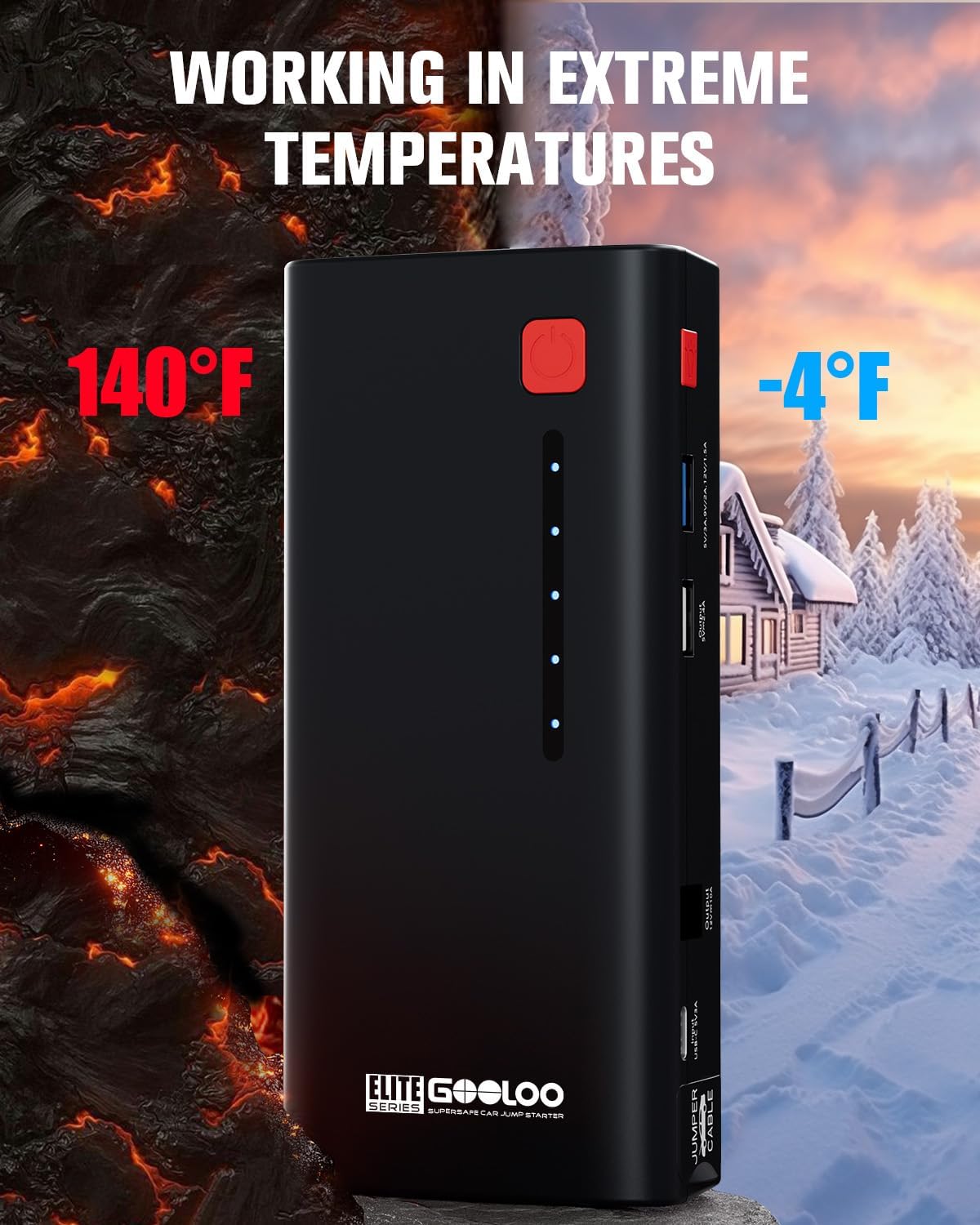 - SAFE AND EASY TO USE: The smart jumper cable features 10 kinds of advanced safety technologies,including over-current protection, overload protection, over-voltage protection, over-charge protection and high-temperature protection to ensure safety for the user. Besides, the jump starter battery pack has good quality to work well in extreme temperature (-4°F to 140°F).