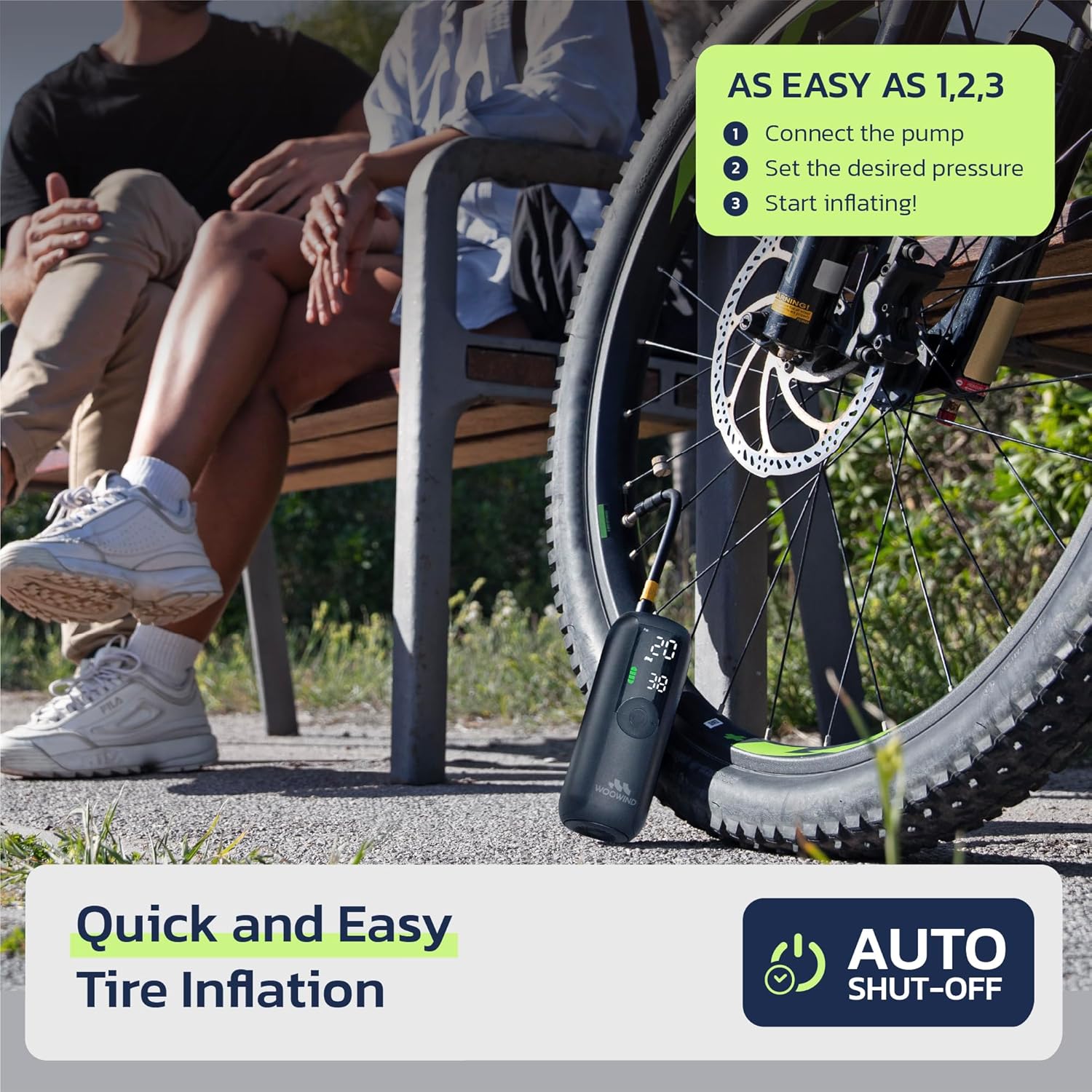 Woowind Tire Inflator Portable Air Compressor, Electric Bike Tire Pump with Gauge, Air Pump for Car Tires, 150PSI, Mobile Air Compressor for Car, Motorcycle