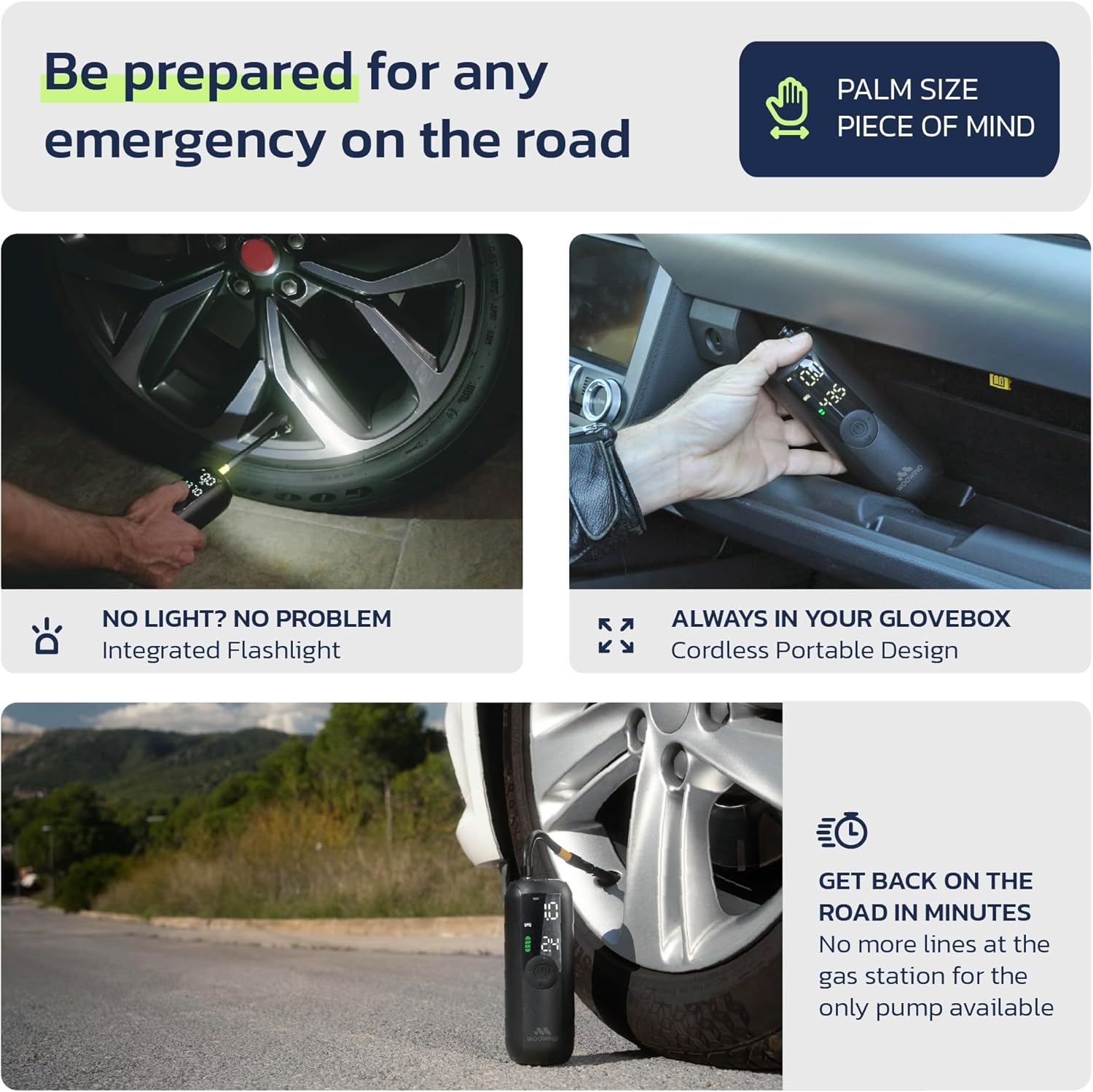 - COMPACT & PORTABLE: Designed to fit in your glove box or backpack, this lightweight and cordless inflator is ideal for on-the-go inflation without the need for a 12V DC outlet. Ergonomic, store directly the flexible hose inside the portable electric air pump compartment after usage.