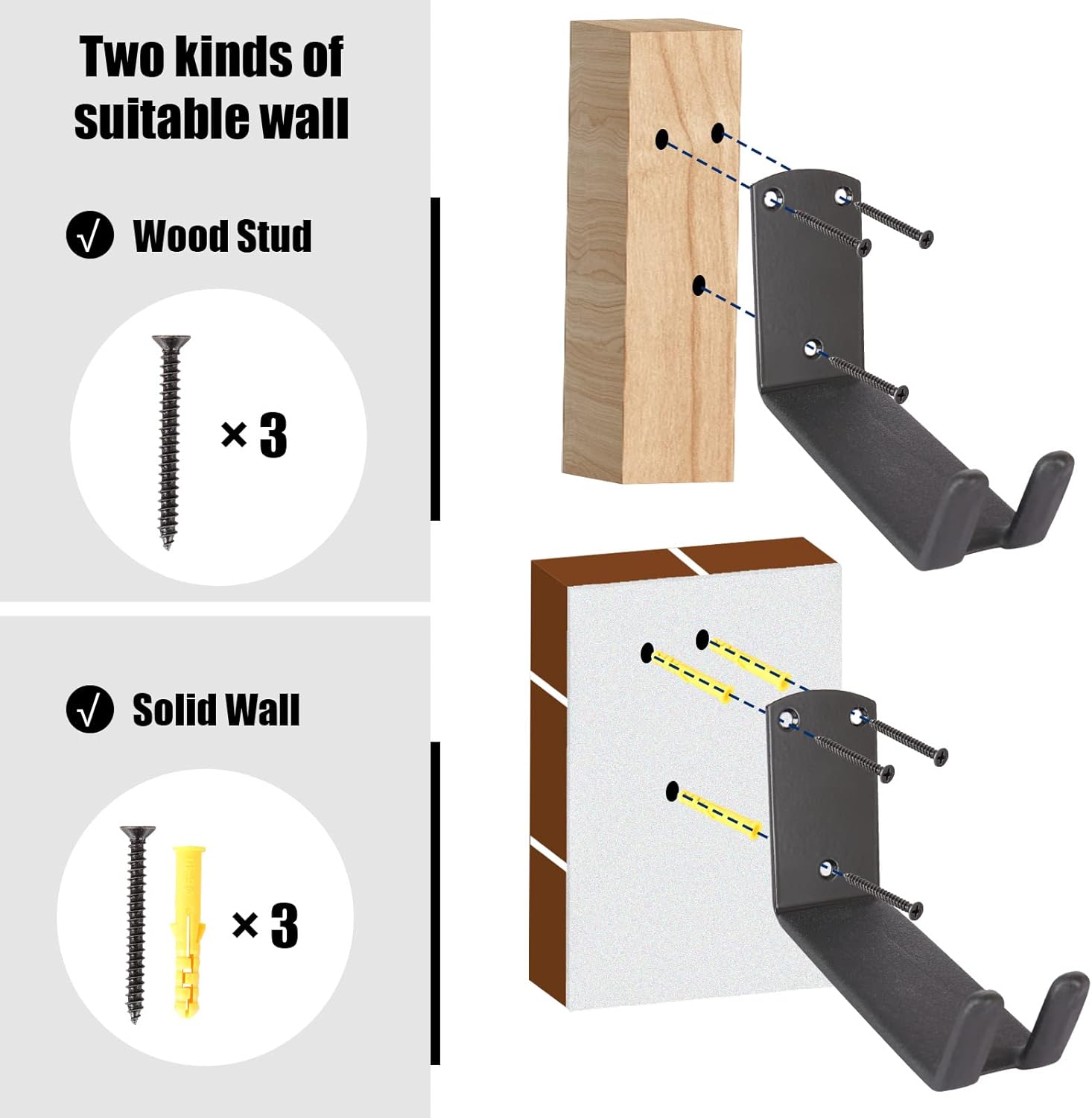 Bike Wall Mount, Pedal Mount Bike Rack for Garage, Bike Storage Hanger Bicycle, Heavy Duty Bike Hooks with Rubber Pad for Wall, Max 50LB, 2 Set