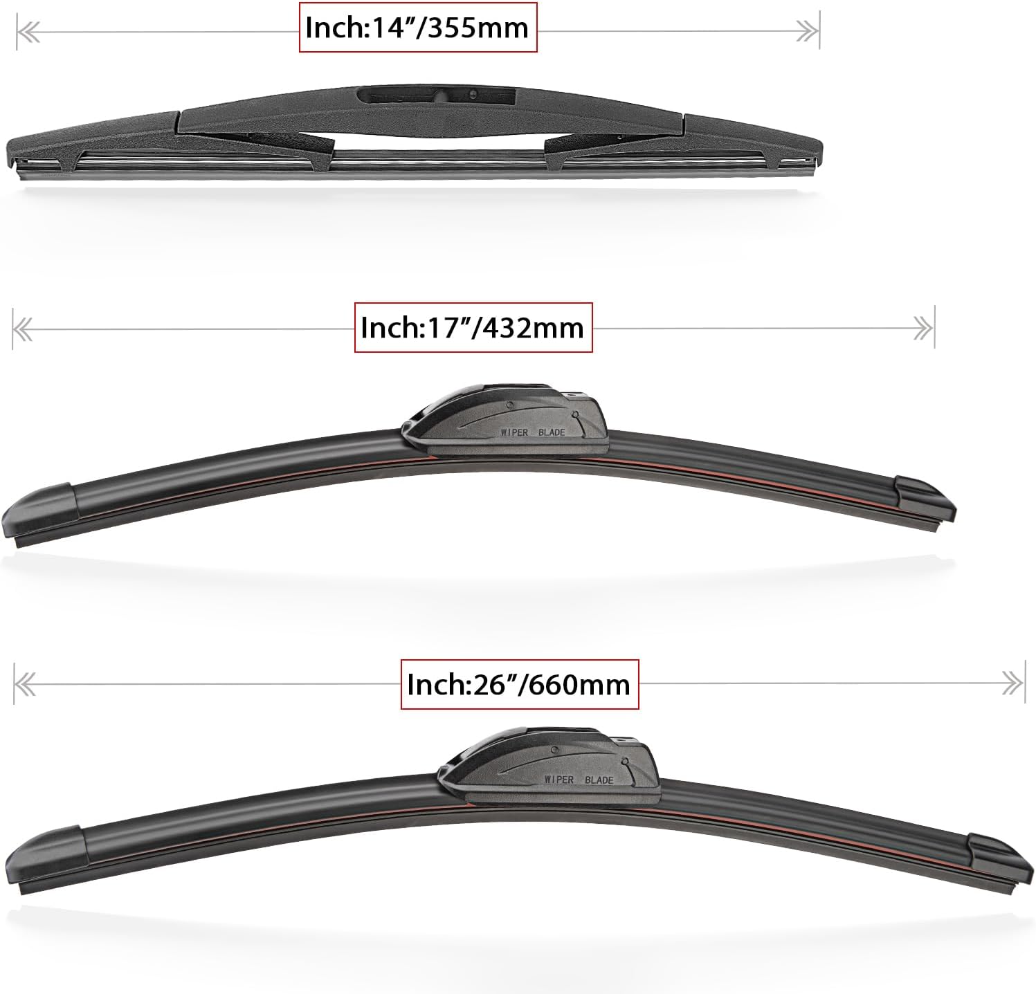 Windshield Wiper Blades Replacement for 2012-2018 Subaru Forester / 2015-2019 Subaru Outback Original Factory Quality Front Rear Wipers Blade Set for My Car - 26" 17" 14" (Pack of 3)