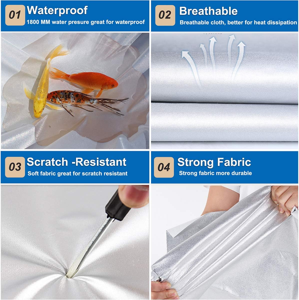 - ❰ 210D Oxford Material ❱ ⎯⎯ Kaugung vehicle cover adopt newest secure materials.1800MM water pressure keep the cover 100% Waterproof, great for rainproof snowproof in winter. Silver coating is good at sunproof, anti-Uv and keeps cool in summer. Anti-aging agents make the cover more durable than other similar covers.