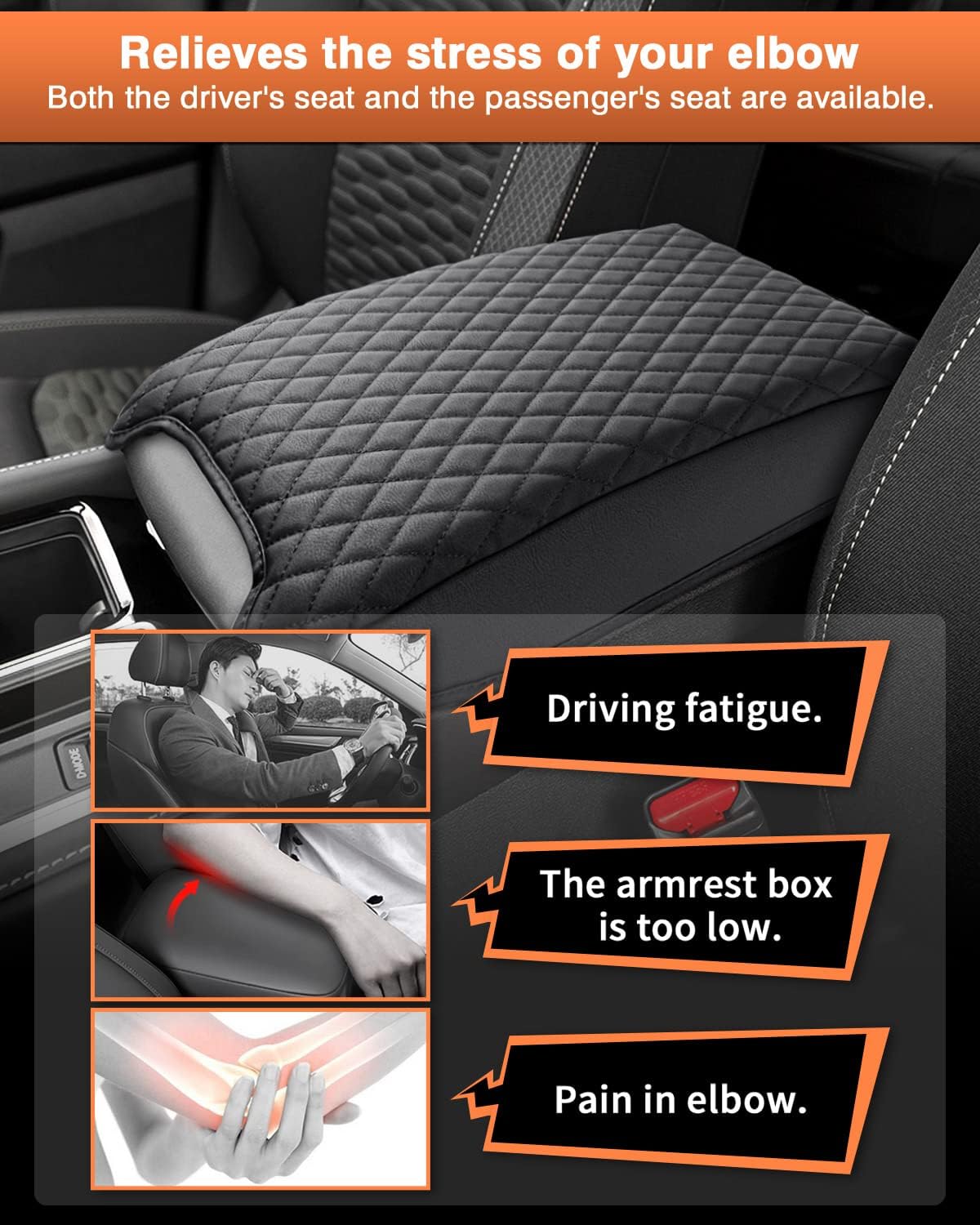 - 【Thickened Sponge Design】: Shademax middle console cover has a thicker sponge than normal armrest pads, which can reduce elbow pressure to a greater extent and relieve fatigue during driving. The armrest cushion's softer design keeps you away from bumps and lets you enjoy your trip to the endless.