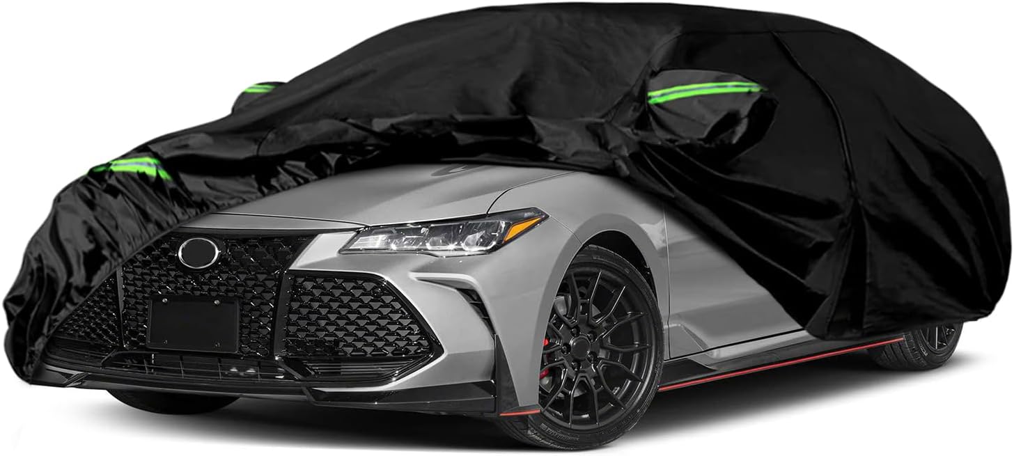 Waterproof Car Cover Compatible with Toyota Avalon 2005-2025, Black 210T Inside Cotton Cover with Door Zippers for Snow Rain Dust Outdoor Protection