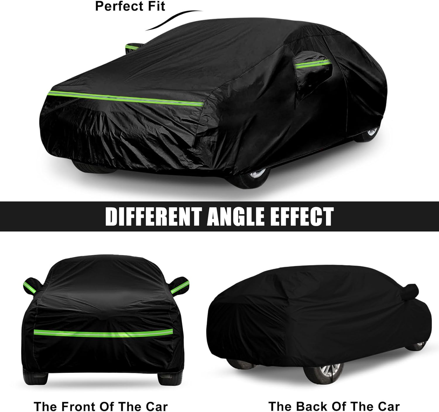 - 3 Windproof Details: windproof buckle, windproof strips and elastic belt on the tail edge, so that your car cover will not be blown away even in the face of strong wind, which is very good to protect your car