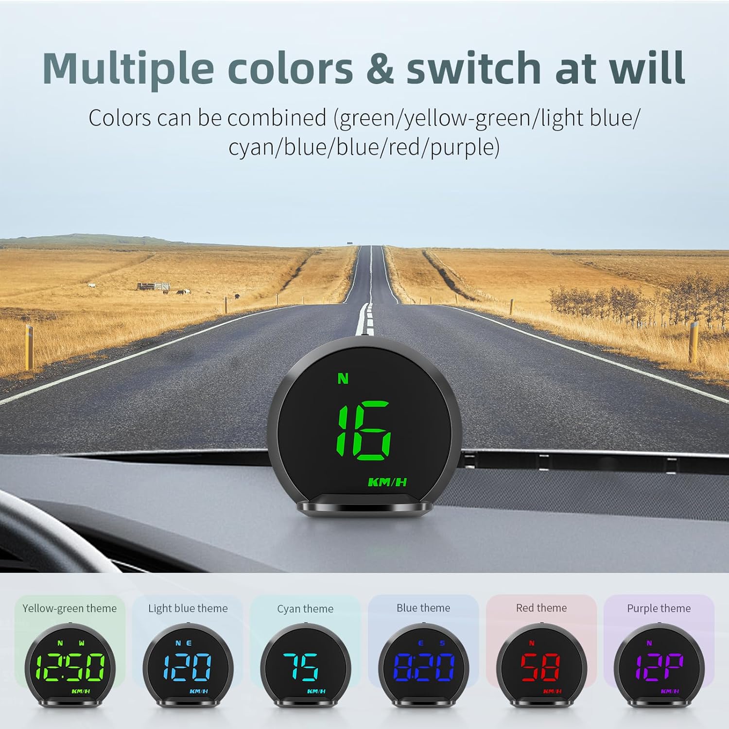 - Digital Gps Speedometer Display: ACECAR GPS speedometer displays the most important mph and direction of driving at the same time. 6 display colors, you can switch to your favorite color and interface, technology is full of sense, bring more safety and fun for your driving. It allows you to focus on the road and avoid the dangerous action of looking down at the meter to ensure driving safety