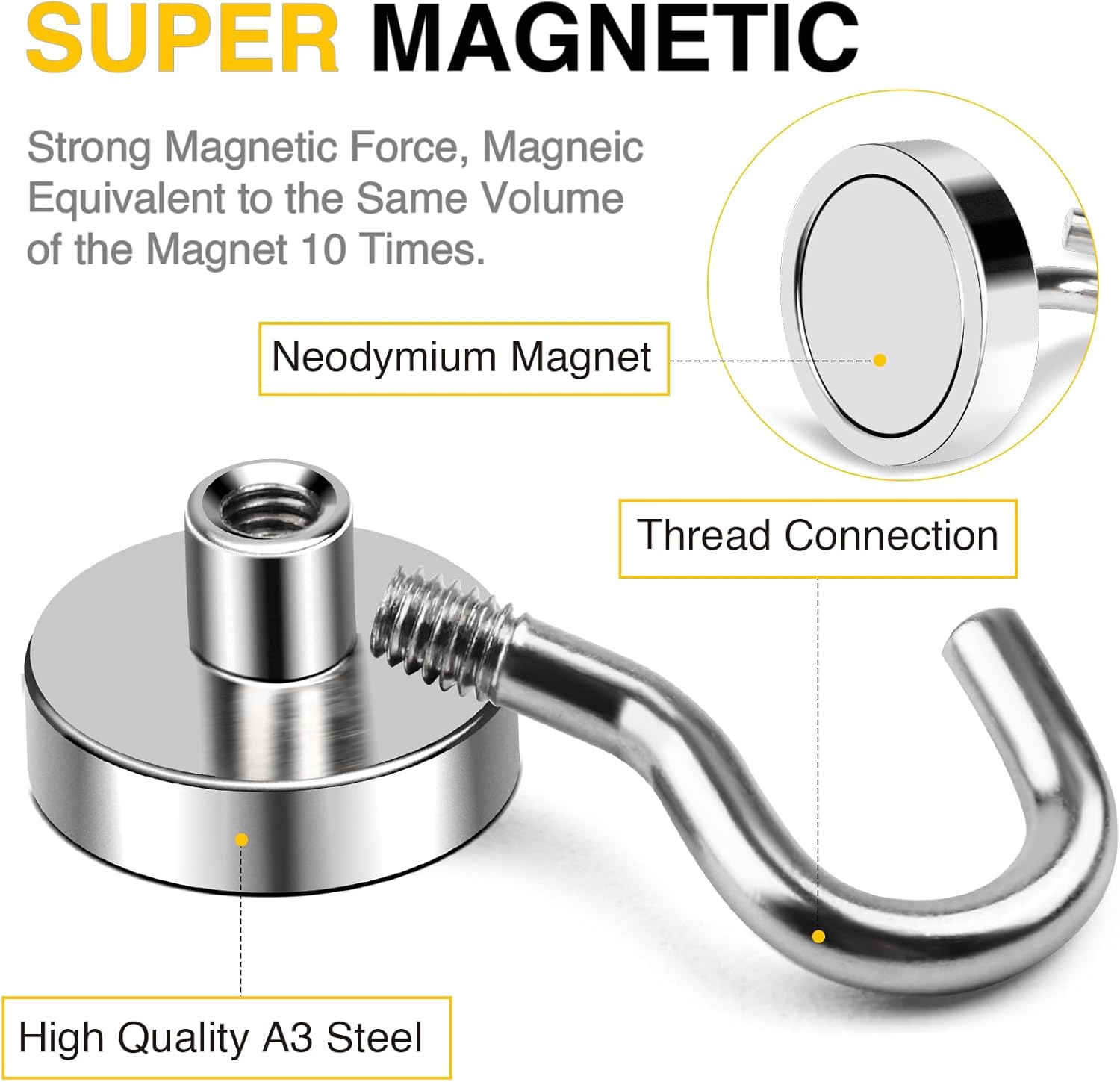 - 【Industrial Grade】Strong magnetic hooks are made of high grade and exquisite quality rare earth neodymium magnet and steel. Compact and lightweight with strong force, which can be strongly attracted by iron, nickel and other ferromagnetic material.