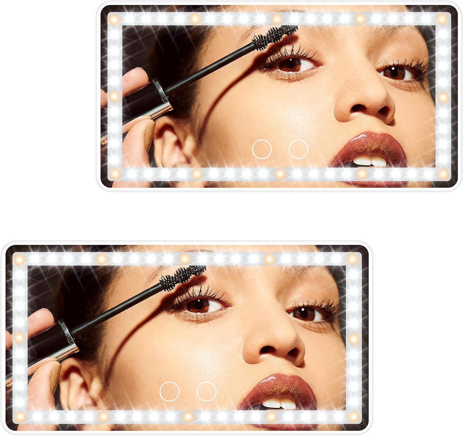 Car Sun Visor Vanity Mirror with Lights, 2 Pcs Rechargeable Car Makeup Mirror Accessories, Birthday Gifts for Women Girl, 3 Light Modes, Dimmable Touch Led Screen, Universal for Car Truck