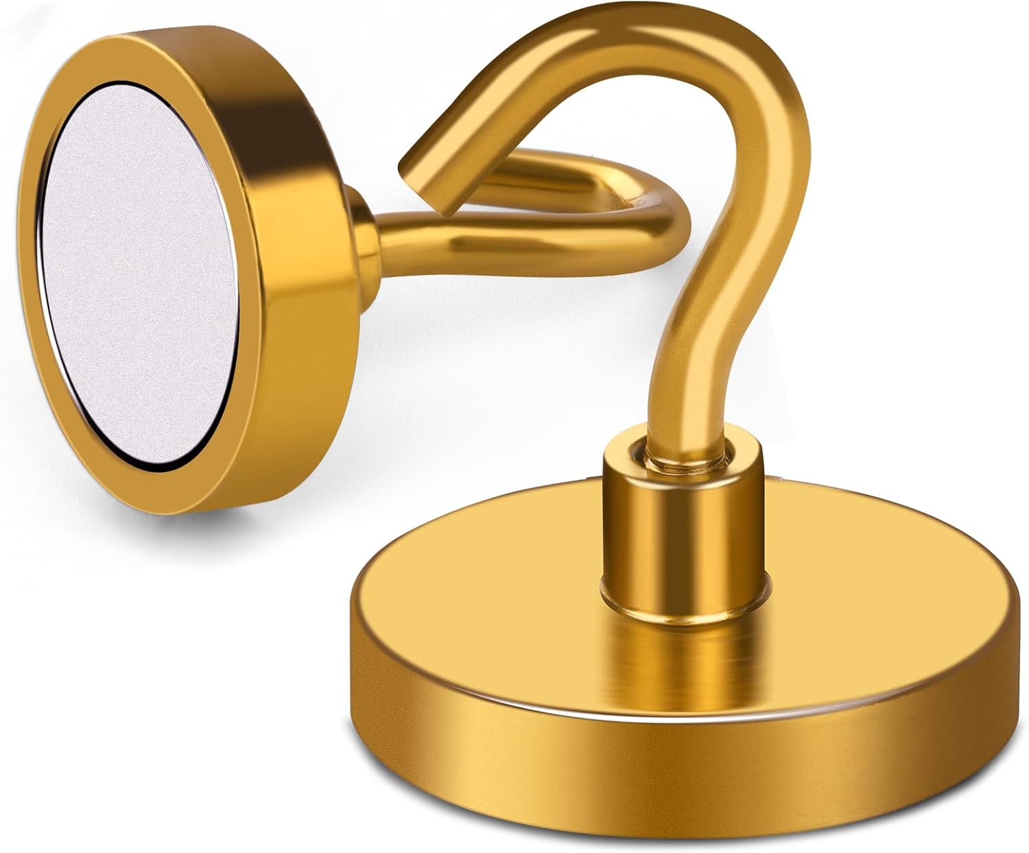 - 【Excellent layer Coating】- Our metal magnetic hooks come with an excellent triple-layer coating of Ni+Cu+Ni, which greatly reinforces their corrosion resistance. This coating is the best available, providing a shiny and rust-resistant surface that helps prevent chipping or cracking. The coated steel cup also provides protection for the heavy duty magnetic refrigerator hooks. With this excellent layer coating, you can trust that our magnetic hanging hooks are safe to use and will last a long time