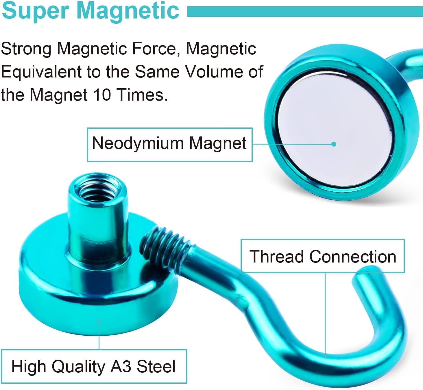 - 【Industrial Grade】Strong magnetic hooks are made of high grade and exquisite quality rare earth neodymium magnet and steel. Compact and lightweight with strong force, which can be strongly attracted by iron, nickel and other ferromagnetic material.