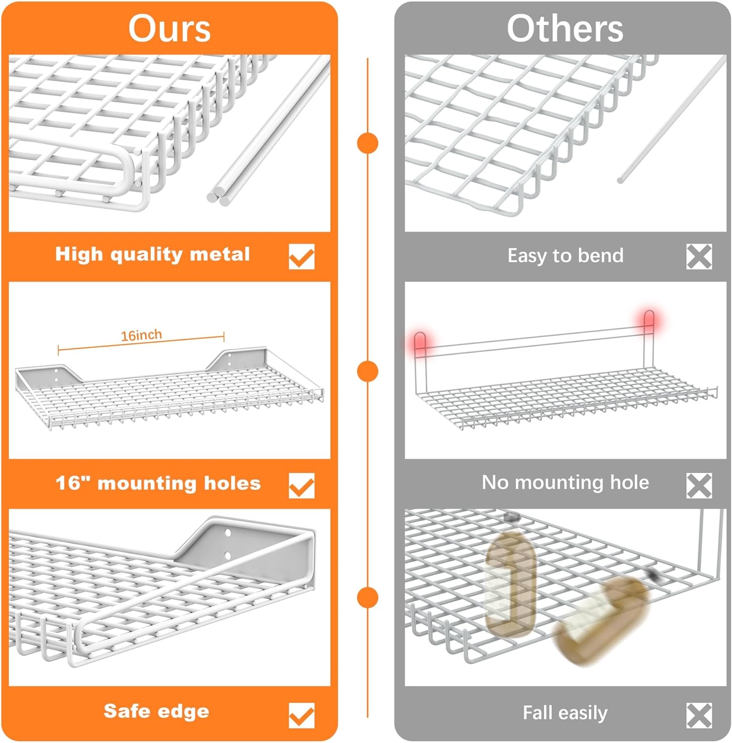 - Safe Edge: Wall mounted shelving has safe and no sharp edges, it is very important that nothing will slide off the shelf.