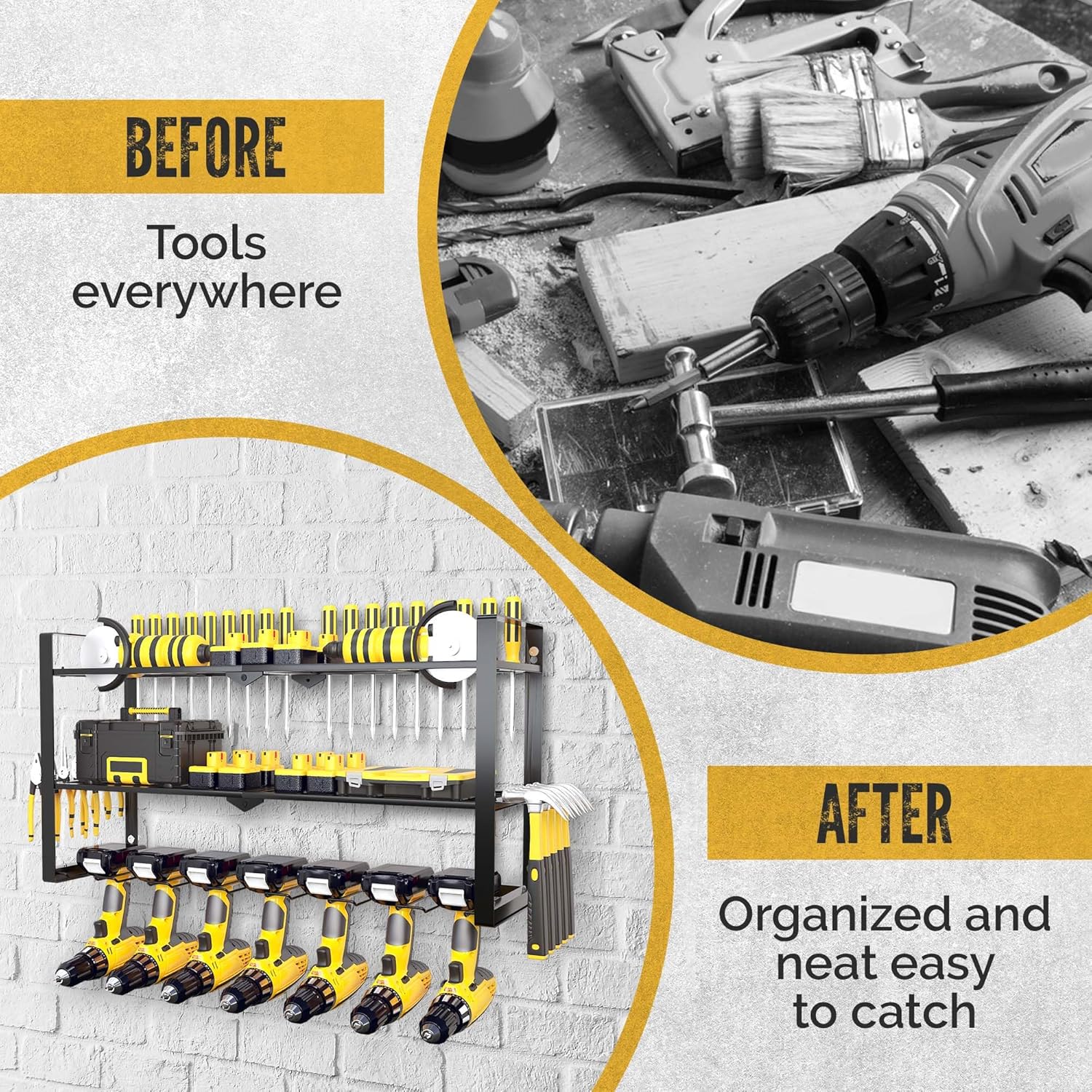 - šššššš ššš ššššššššš šššššš: Constructed from heavy-duty alloy steel, this Power Tool Storage Rack is built to last. It features superb welding that allows it to support up to 190 lbs, ensuring it remains reliable, eliminating any concerns about the rack detaching from the wall.