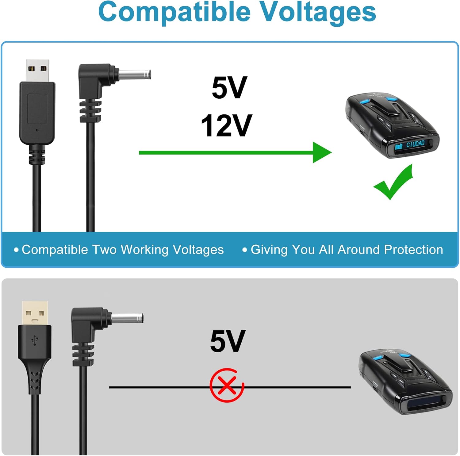 - ✅Stable Voltage:Built-in intelligent chips,can successfully started the radar detector when connected to any USB A interface in the car,safe and stable, more convenient.