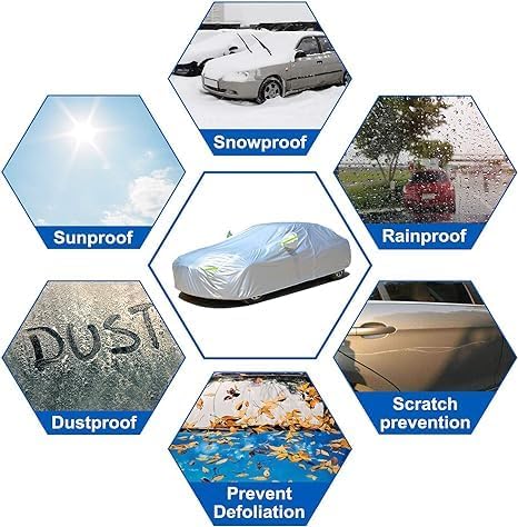 - 【Extreme Weather Protection】--KouKou thick weatherproof car covers provide overall protection of vehicle from all-weather elements: dust, snow, industrial pollution, bird droppings, leaves, pollens, acid rain and etc.