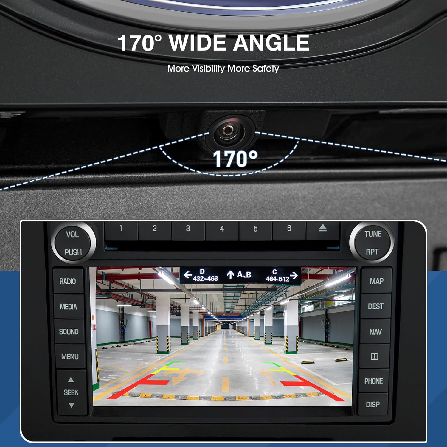 - [Clear Day and Night]: This Reversing Parking Assist Camera made of high quality material and lens, support 170° wide vision and provides the driver with a clear and accurate color reproduction whenever in the day or night.
