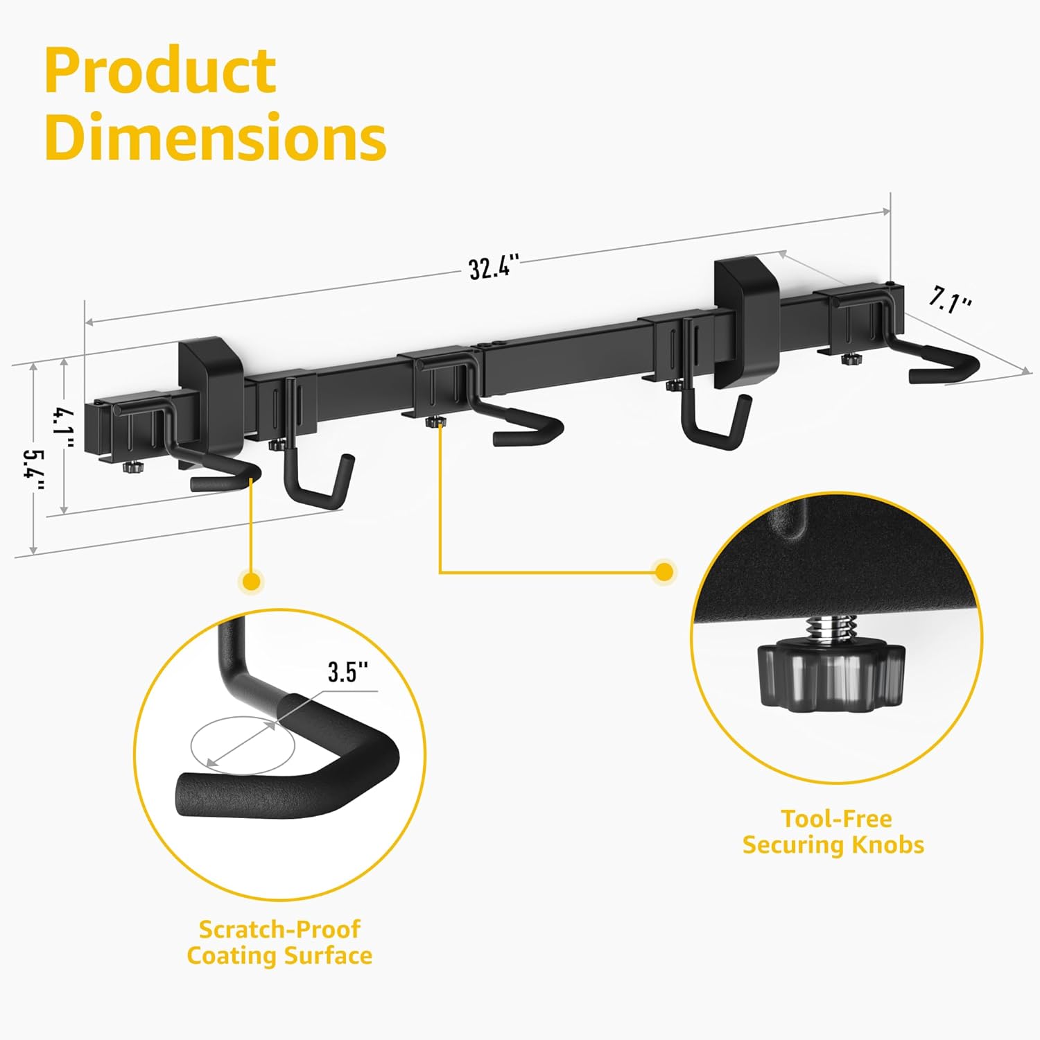 - 【FITS MOST BIKES】Our adjustable bike racks can be repositioned to fit different bicycle sizes as storage needs evolve. It is perfect for any bike with a rim width less than 3.5 inches, and fits most types of bikes: mountain bikes, road bikes, folding bikes, city bikes, off-road bikes, adult bikes and children's bikes. The wide-sized hooks make hanging and dismantling bikes a breeze (not suitable for fat tires over 3.5 inches).