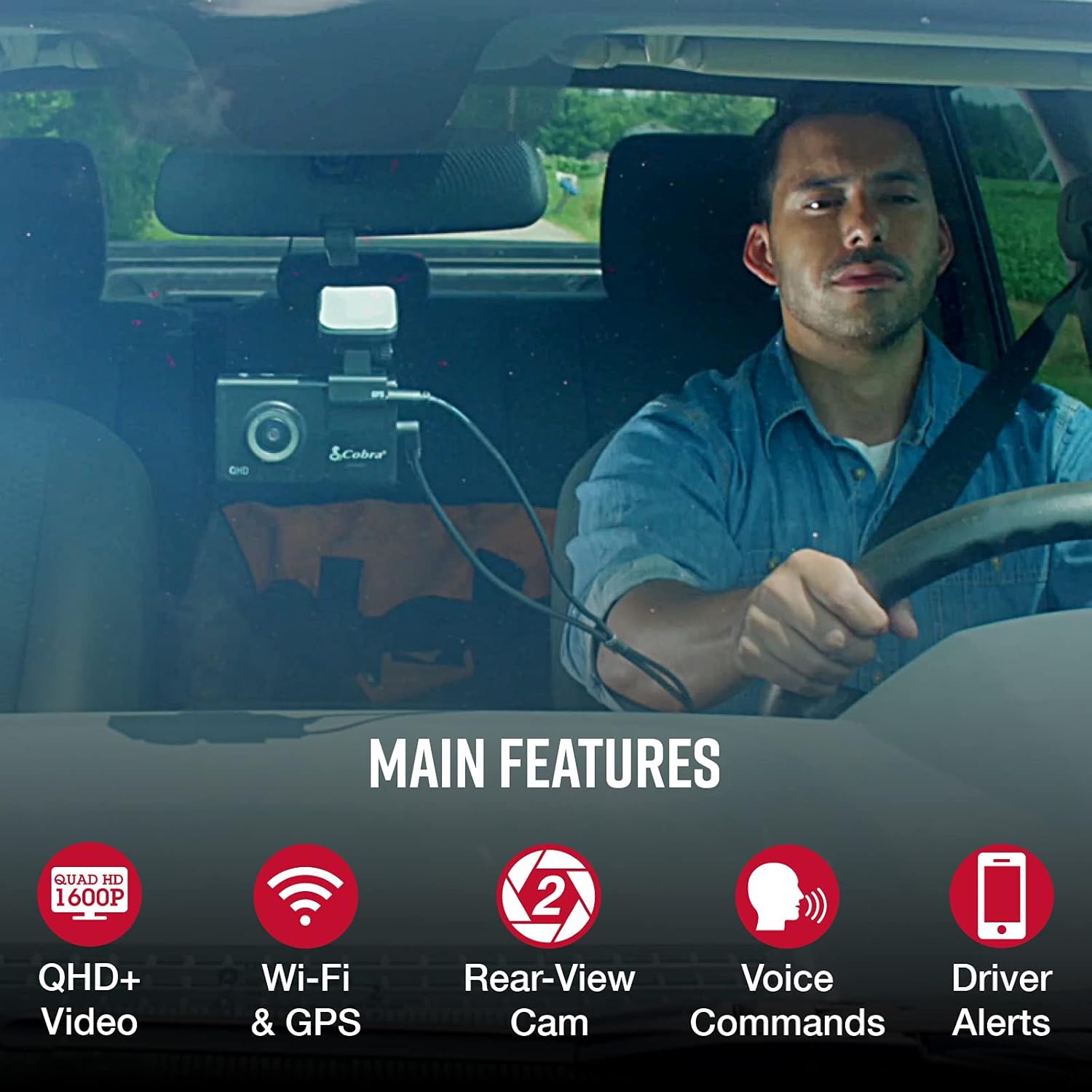 - Heads-Up Navigation – Drive safer with on-screen notifications to upcoming turns, even if your map is running in the background on your phone. Hands-free dash cam operation using voice commands allows you to keep your focus on the road.