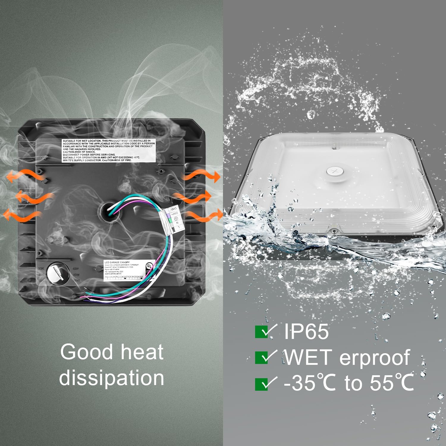 80W/60W/40W Power Selectable LED Canopy Garage Light with 3CCT (3500K/4000K/5000K), LED Parking Garage Lights 90-277V IP65 Commercial Residential Lights DLC (40W/ 60W/80W Power Selectable -2 PACK)