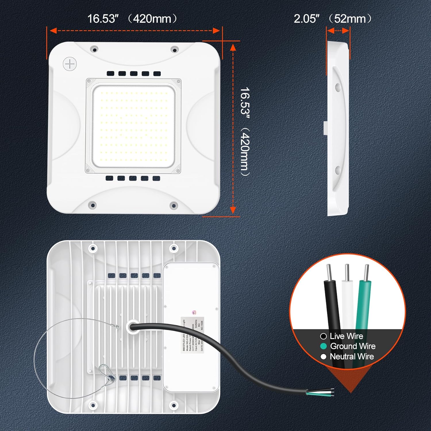 - 【Sturdy Quality】The ETL&DLC Listed BBESTLED canopy lights are made of heavy-duty die-cast aluminum housing for impact resistance and excellent heat dissipation.non-yellowing PC shade and 120°beam angle, Large LED surface and diffused lens make BBESTLED led canopy lights deliver even ambient light, a brighter and more efficient output