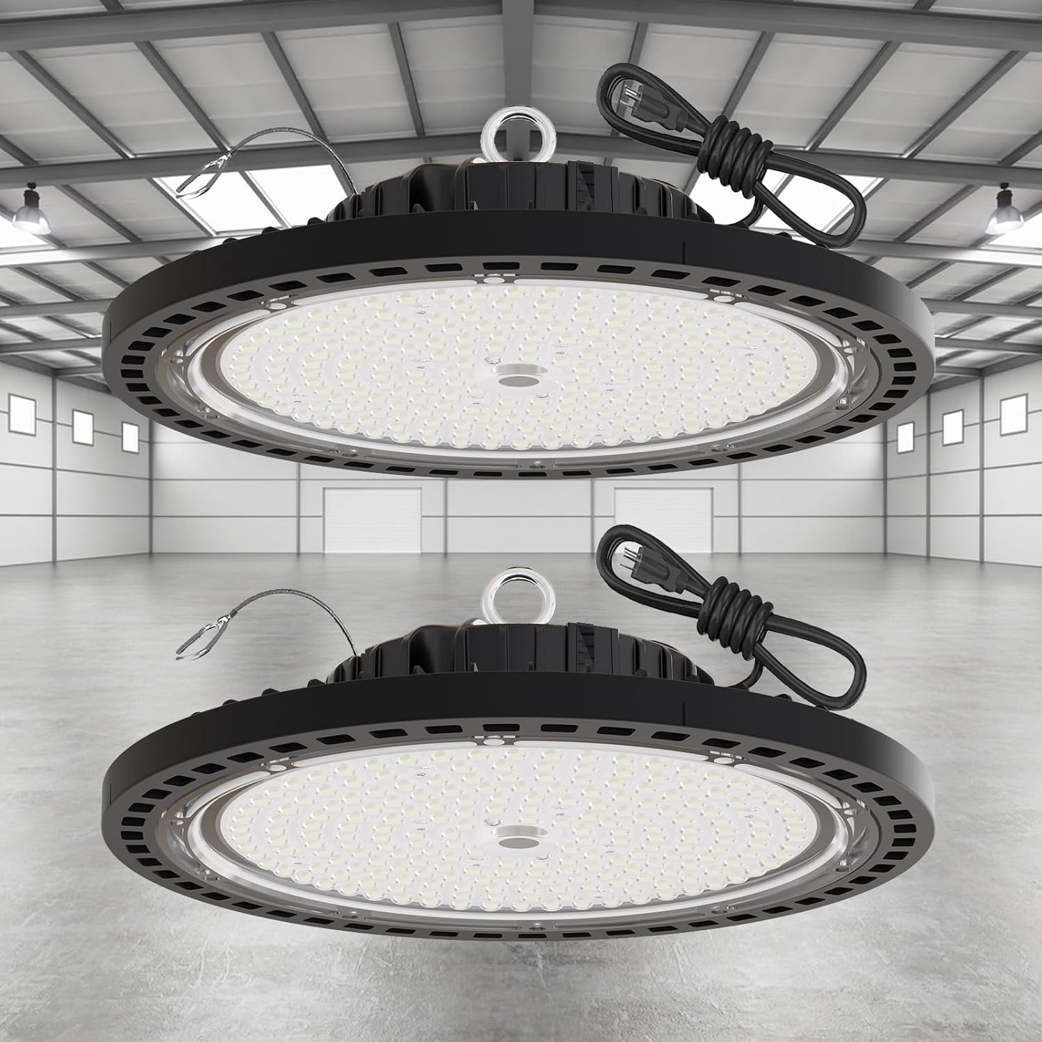 - 【Simplified Installation】Includes 5ft UL-listed cord + US plug + safety cable. Mounts in minutes without electrician - compatible with most commercial bay lighting setups