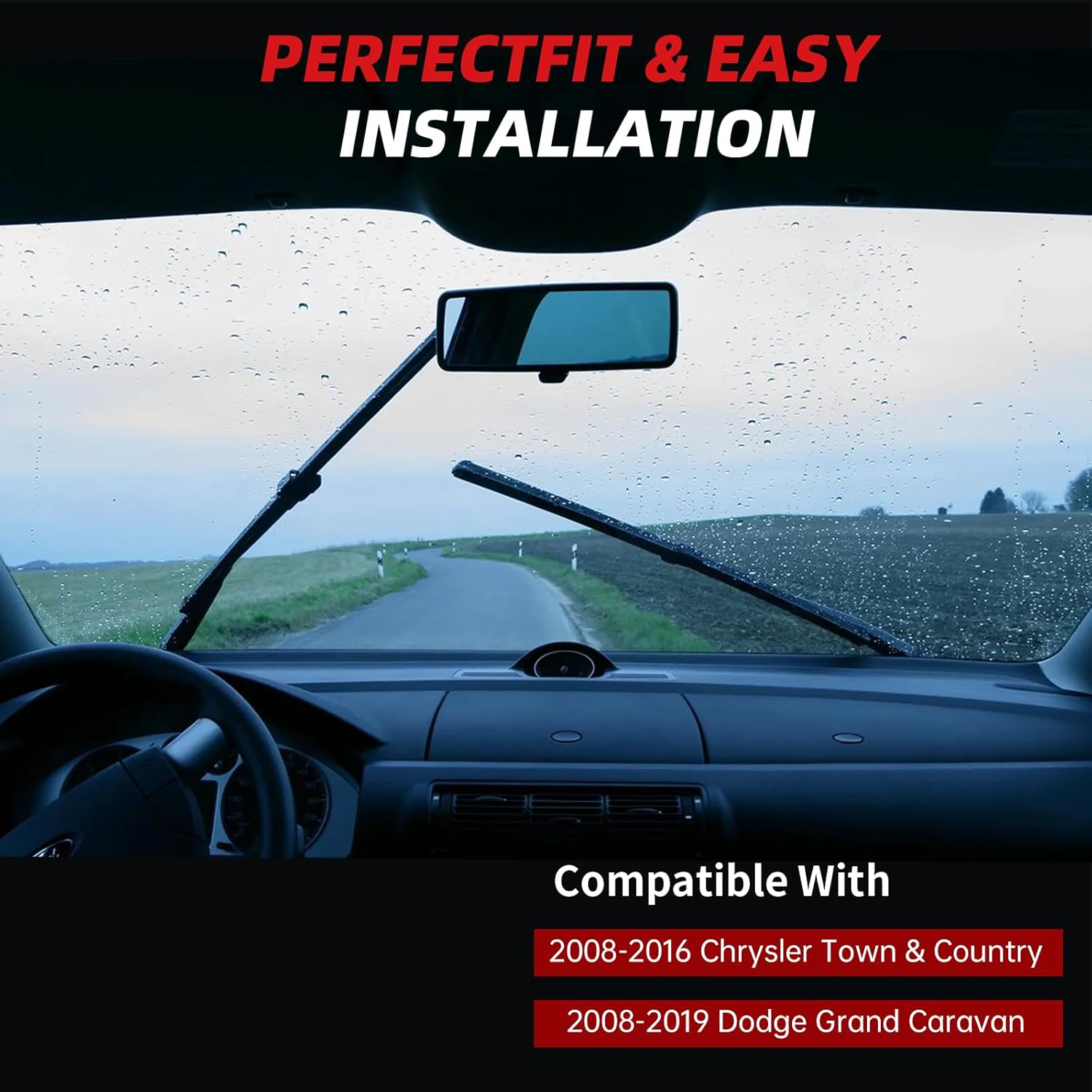 - [26"+20"+16" Perfect Fitment]: Replacement for Dodge Grand Caravan 2008-2019, Chrysler Town & Country 2008-2016. Our windshield wiper blades are engineered to provide a perfect fit for vehicle models, ensuring optimal performance and coverage
