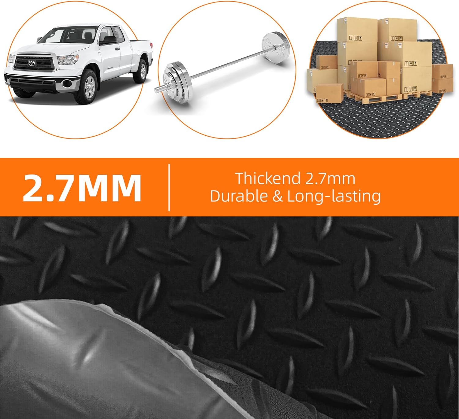 - Non-Slip Surface and Leak-Proof backing: The diamond plate rubber mat is clearly visible, increasing friction and making walking safer; The waterproof design easily handles water stains and spills to avoiding seepage, this way your garage floor is also less likely to be stained or damaged
