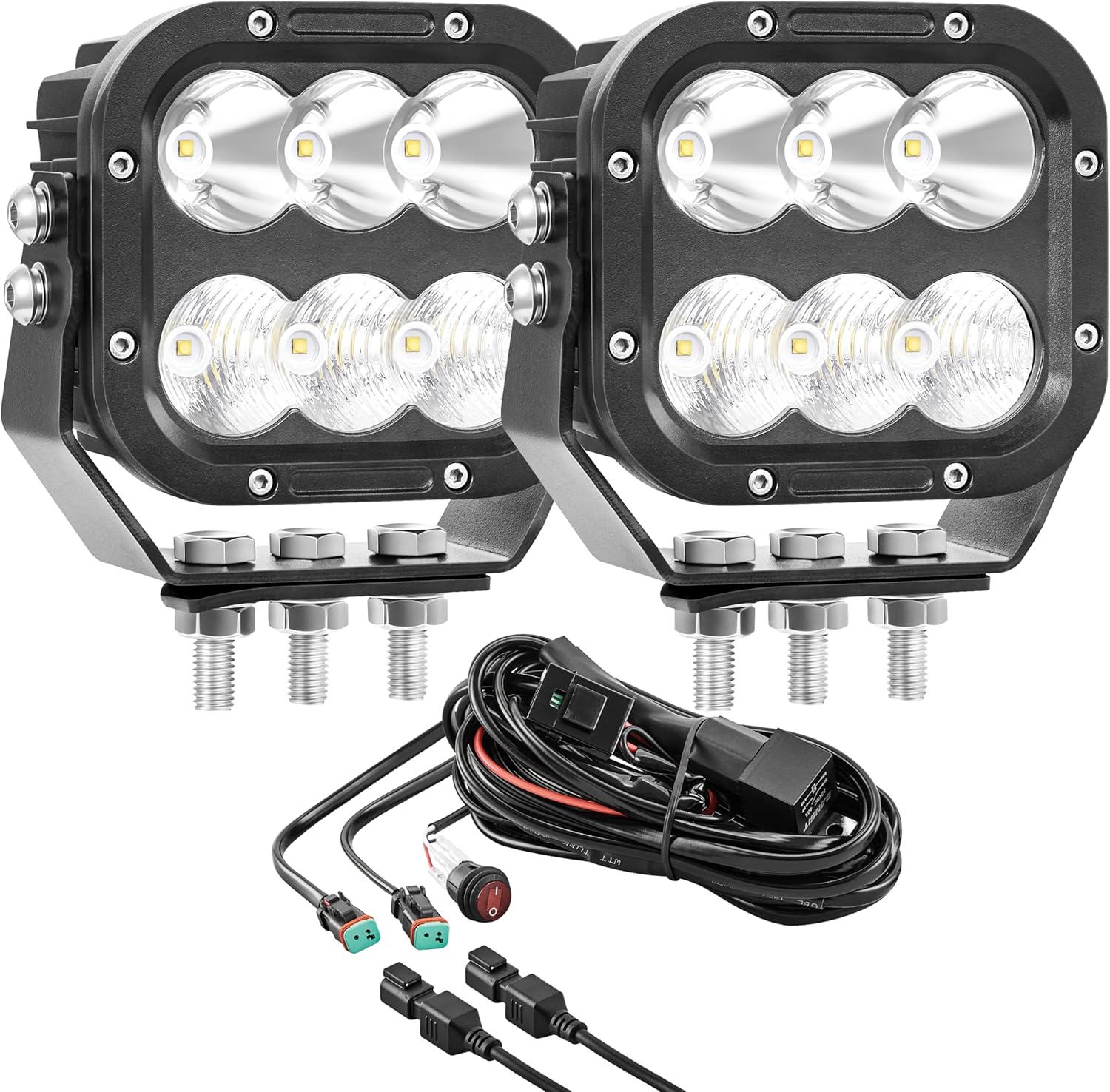- Pack Includes: 2 Pack 5 Inch LED light pods. 1 Kit 3 Meters Waterproof Wiring Harness, DT connectors.
