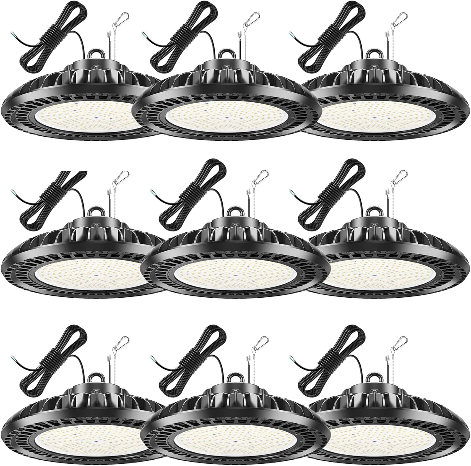 - ☀Wide Application: UFO led light are commercial grade, meet both dry and wet environments, garages, barns, utility rooms, warehouses, stores, basements, high bay factories, logistic centers, exhibition halls, stadiums, mines, toll booths, supermarkets, parking lots, gyms, bays, laundries and more.