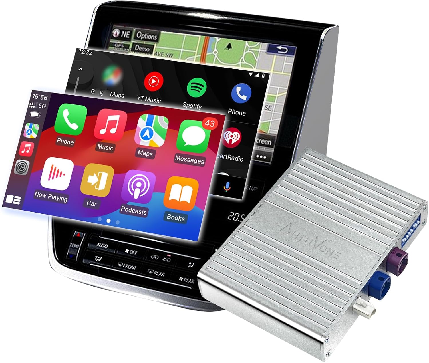 - Wireless CarPlay Android Auto: AUTUVONE wireless LVDS Interface offers Wireless/wired CarPlay Android Auto, AirPlay Mirror link, Compatible OEM car cameras, Keep car OEM Monitor, Support SiRi and Google Voice to help you access to phone call,Navigation,Mobile phone music.