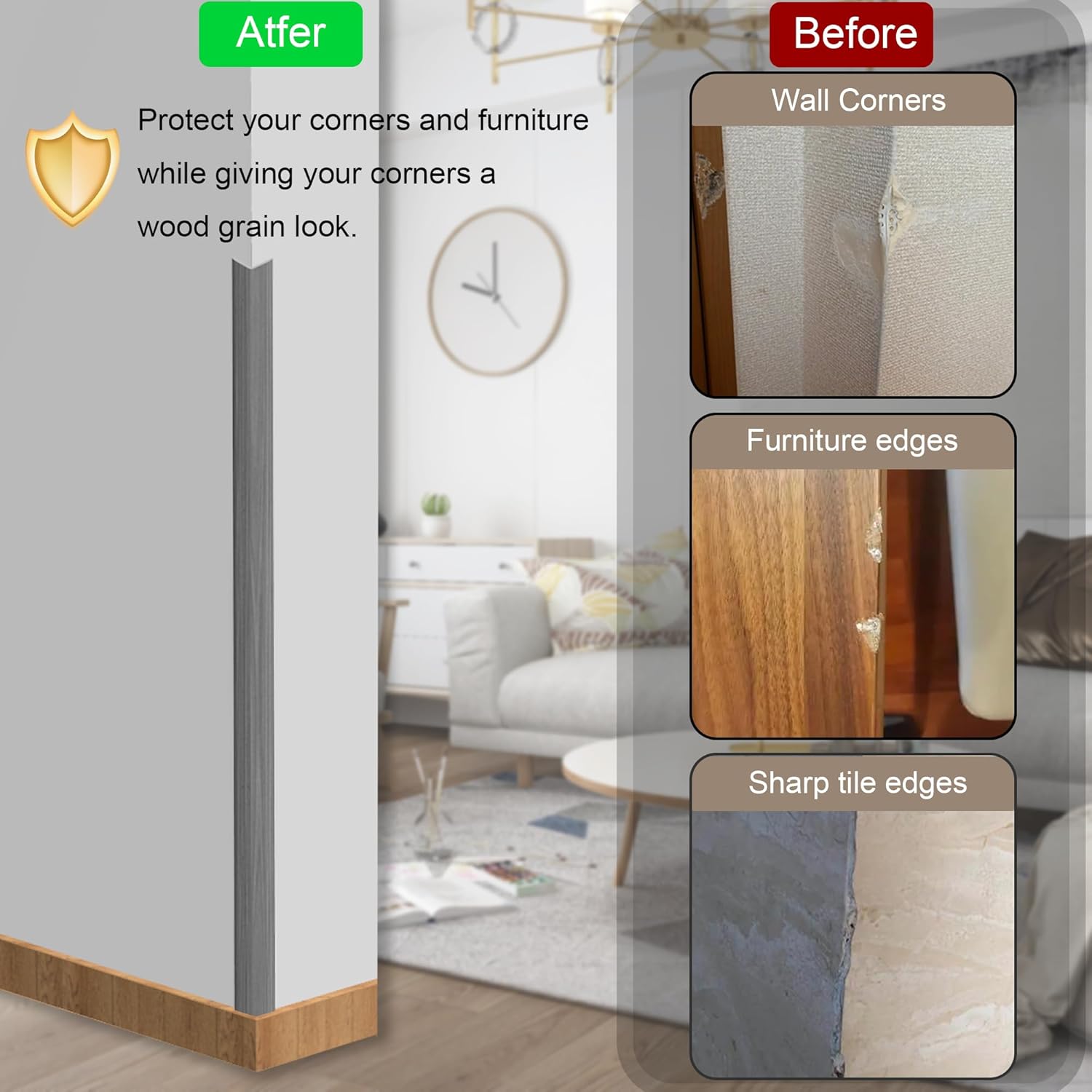 - 🏡Corner protectors can cover sharp edges, protect wall corners, and reduce damage caused by collisions. Widely used on wall edges, stairs, corridors, and can also be used as door frames, window frames, and mirror frames.