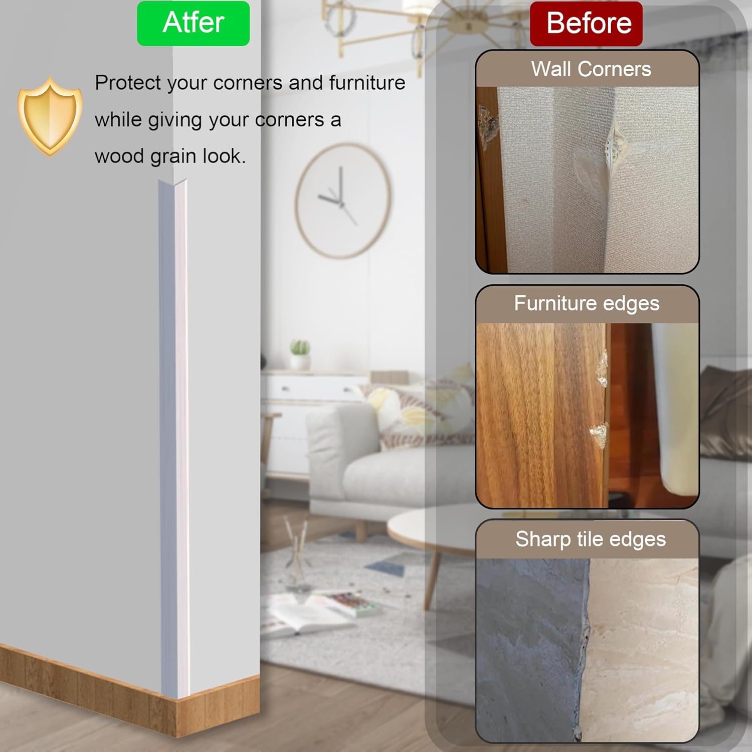 - 🏡Corner protectors can cover sharp edges, protect wall corners, and reduce damage caused by collisions. Widely used on wall edges, stairs, corridors, and can also be used as door frames, window frames, and mirror frames.