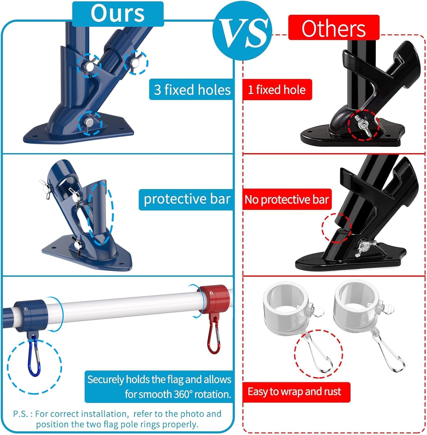 - Exquisite Design: 2*Flag Poles Diameter 1'', 2*Upgraded Brackets, 4*New Tangle Free Rings, 6*Carabiners, 2*Top Balls, 1*Installation Manual