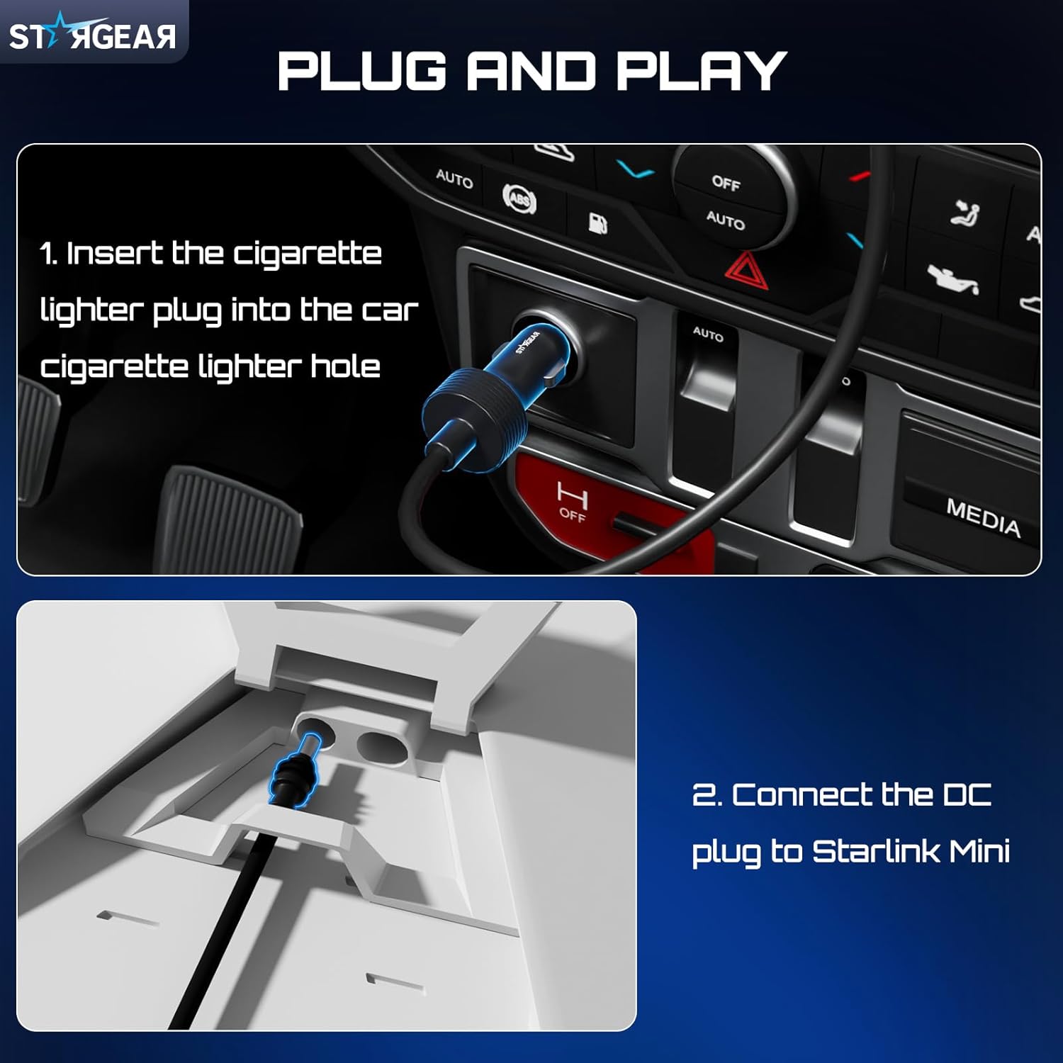 - Wide and Portable Application: Stargear 12v starlink mini car adapter for Starlink mini is equipped with high-quality 16AWG wiring for consistent performance. Designed for 12V-48V cigarette lighter sockets, versatile for rv, car, suv, truck etc.