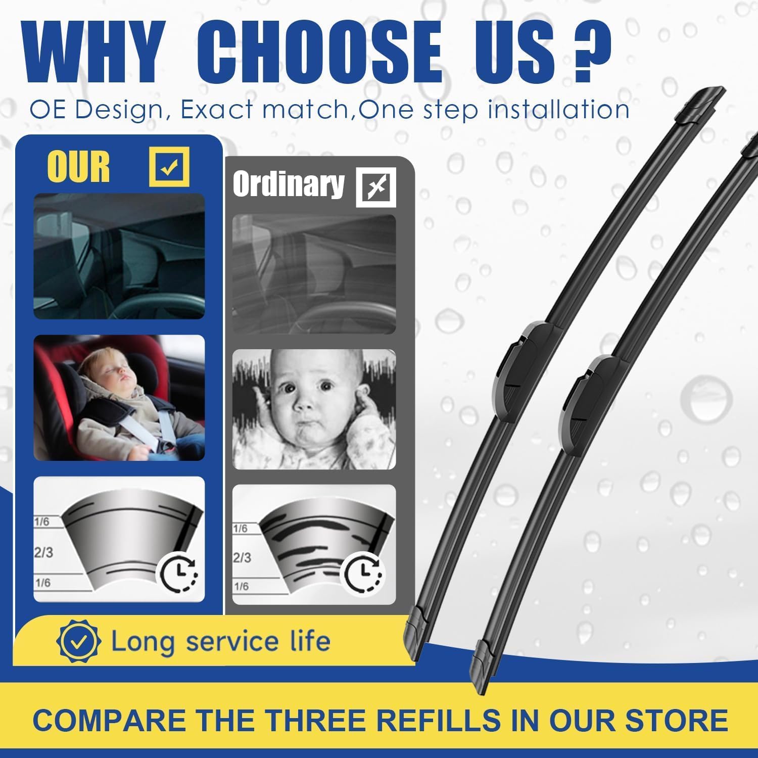 - Dual precision-tensioned steel springs, coupled with an asymmetrical wind spoiler, deliver uniform pressure distribution and better windshield contact, eliminating wet spots that can impede your vision. Blended dual rubber compound with graphite coating ensures smooth, quiet operation and a clean, consistent wiper