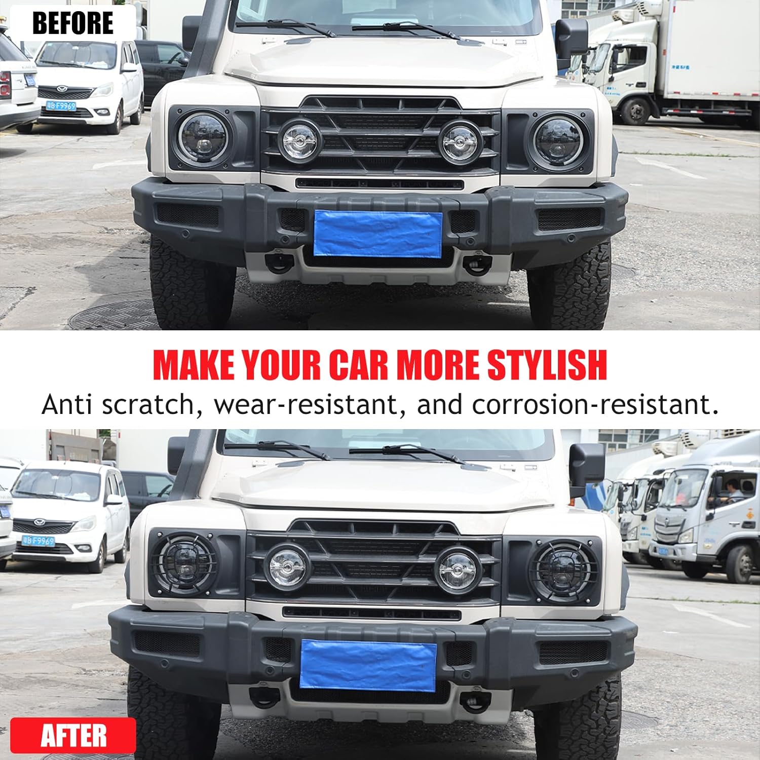 - PERFECT DECORATION: The grille mesh design of the headlight cover changes the monotonous appearance of the car, adds high-grade and domineering temperament, and makes your car look full of hardcore off-road style.