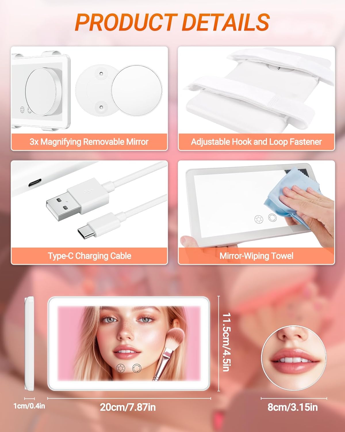 - 🫧【Enhanced LED Car Visor Mirror】Car accessories for women is made of high ABS+4K high-definition mirrored glass. It is not only larger than traditional mirrors, but also equipped with lights to provide you with a brighter and clearer makeup environment. It can not only help you easily complete the perfect makeup in the car, but also make it easier for you to organize your appearance and instruments, while improving your visual experience while driving.