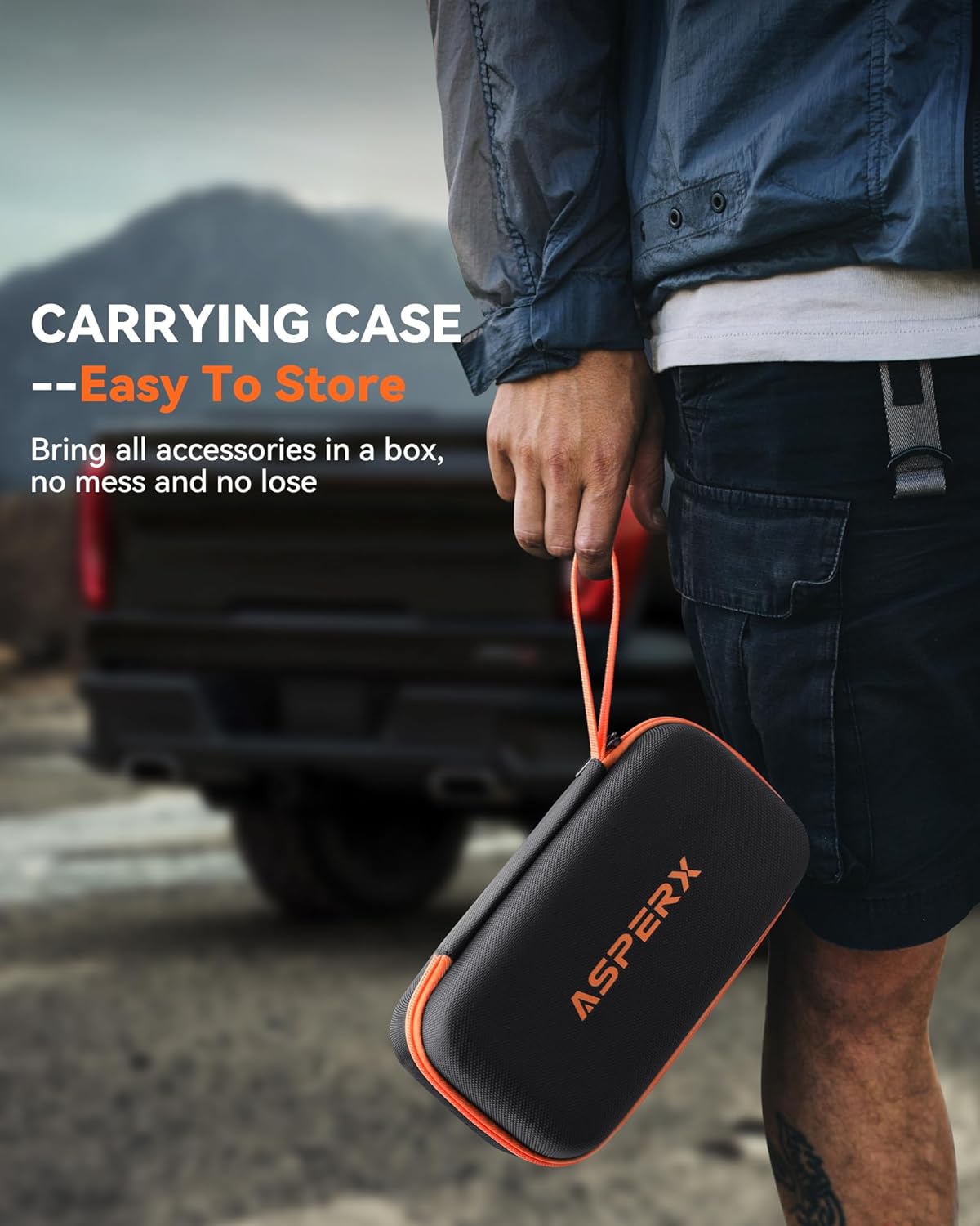 - 【Cordless Freedom & Carry Case】Say goodbye to messy cords! The rechargeable portable air pump runs 25+ minutes per charge – inflate 8-10 car tires or 15+ bike tires effortlessly. The AsperX Carrying Case is made out of an extremely tough material, exhibiting outstanding cut and tear resistance. Compact design fits in any trunk for emergency tire inflator for car readiness.