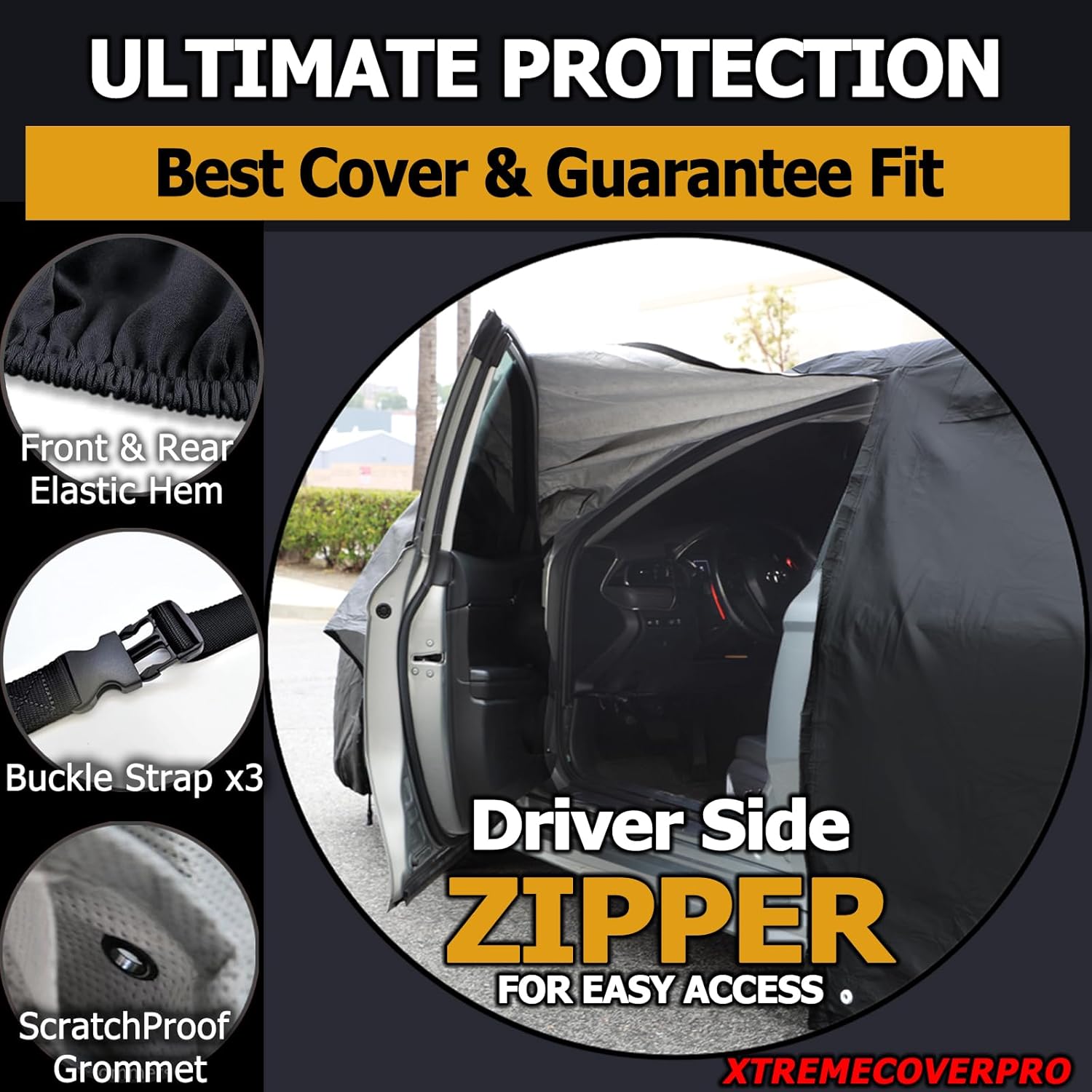 - Easy Access Driver Side Zipper: Side zipper opening for quick entry of the car without removing the cover.