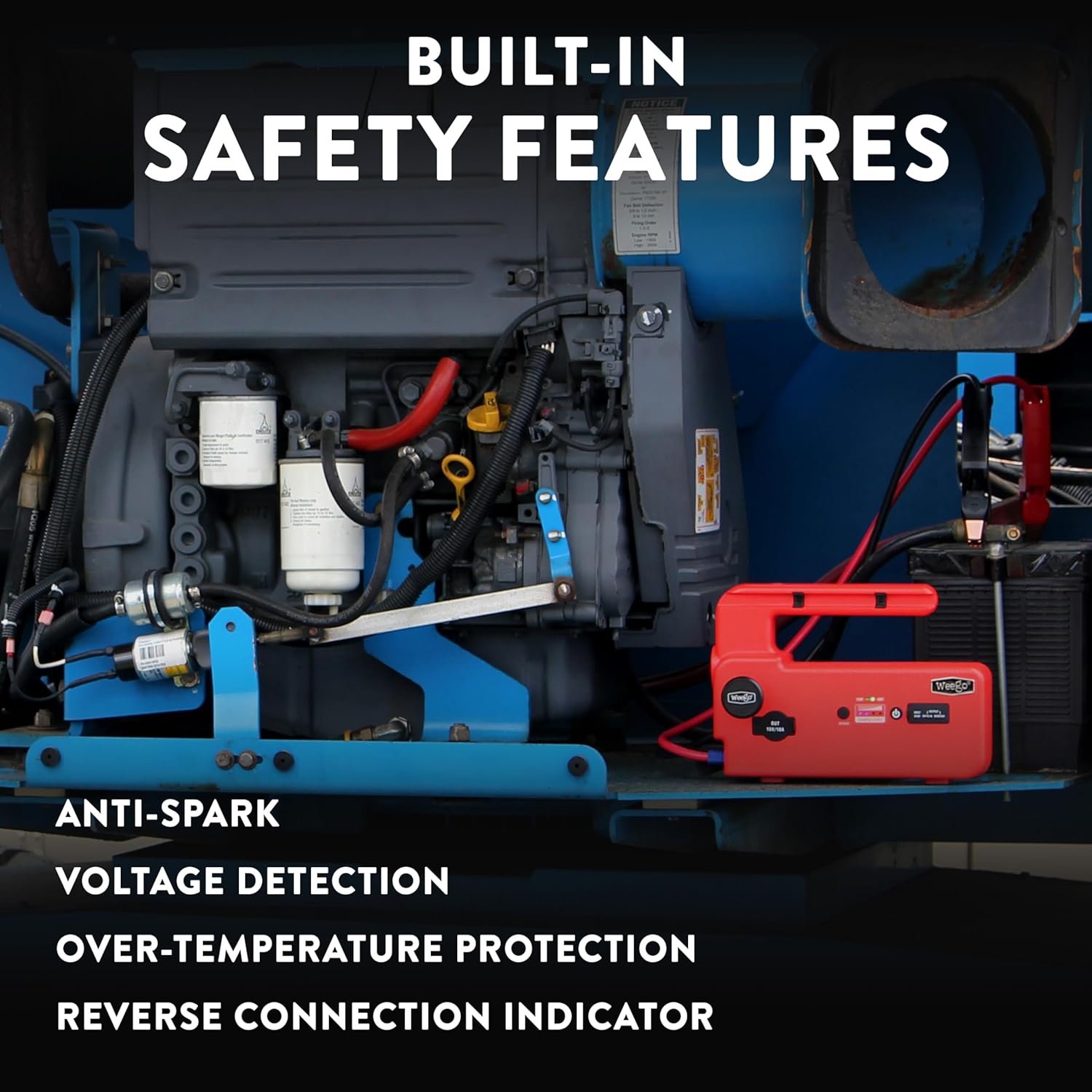 - Enhanced Safety Features: With built-in protections against anti-spark, reverse polarity, and power surges, the Weego C120 prioritizes your safety. A series of lights and sounds guide you through the jump-starting process, providing confidence and peace of mind.