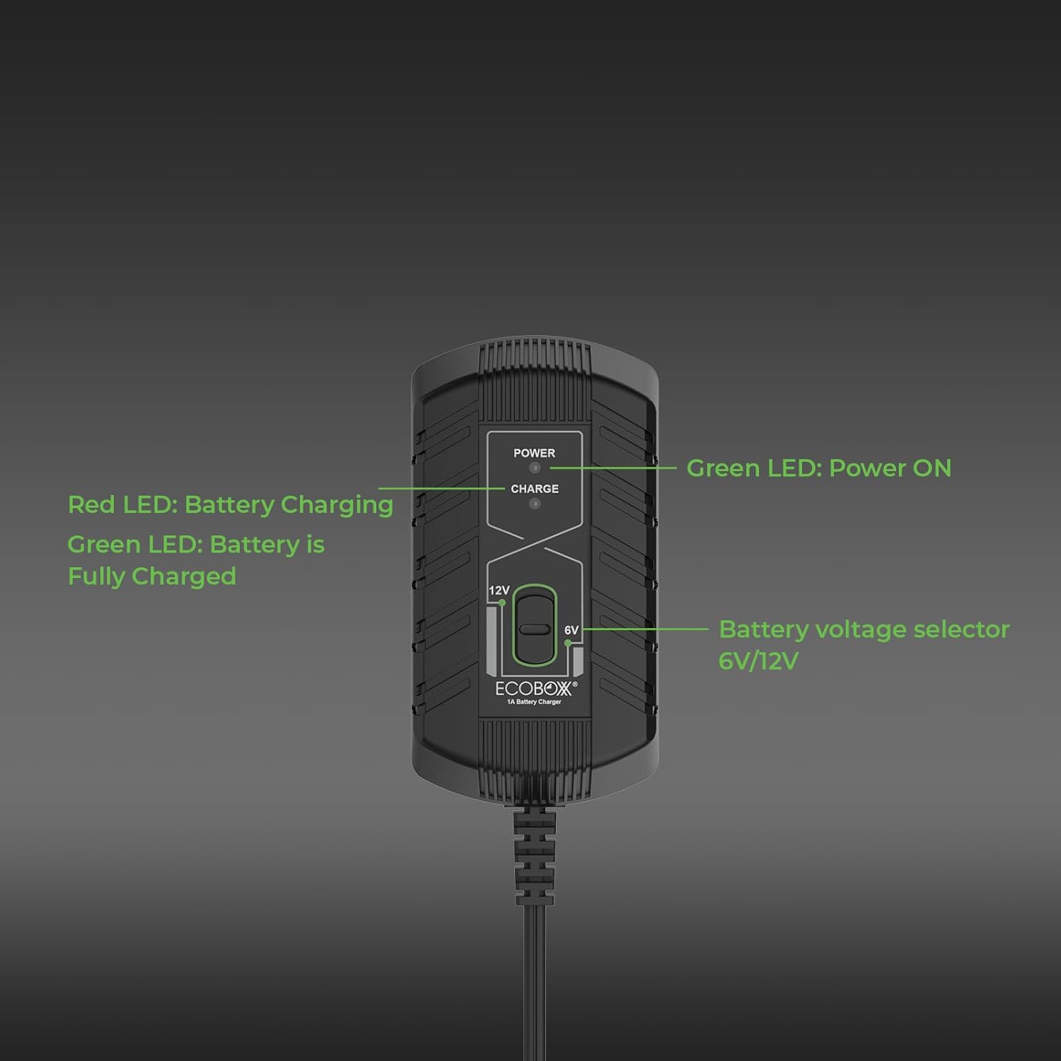 Infinity 1A Battery Charger, 6V / 12V, 3 Stage Charging, Battery Maintainer, Trickle Charge for Lead Acid, Gel, Lithium-ion, STD Batteries in Car, RV, Motorcycle, ATV, Boats
