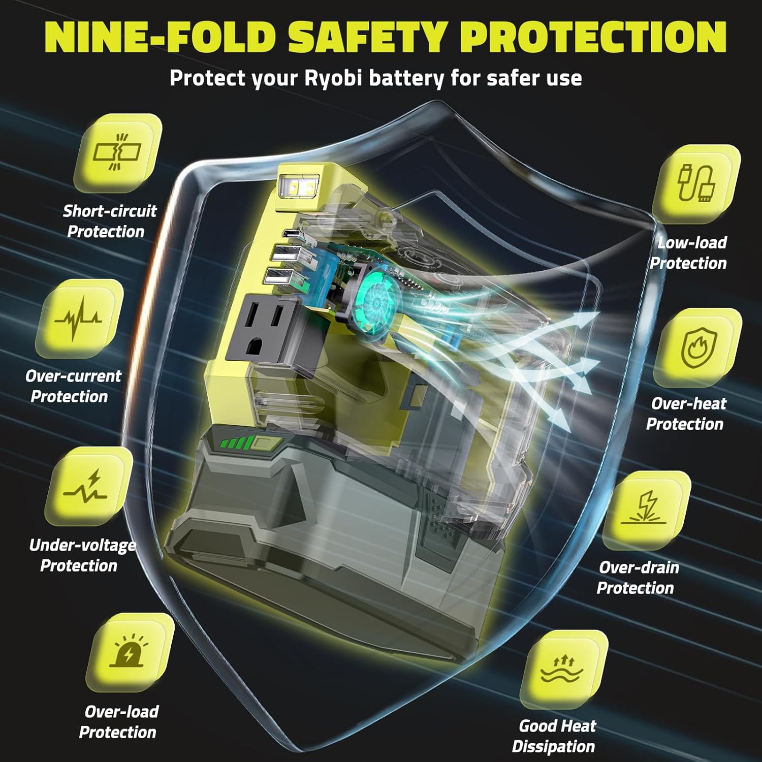- ▶[Compatible with]The battery inverter Compatible With Ryobi 18V Li-ion Battery: ONE+ P189, P190, P191, P192, PBP002, PBP003, PBP004, PBP005, PBP006, P193, P194, P195, P197, P102, P103 , P104, P105, P107, P108, P109, RB18L50, BPL1820, BPL-1820G, BPL-1815, BPL-18152(battery not include) This power inverter swiftly converts batteries into a portable charger, eliminating the need for bulky adapters. Ensure continuous power for various devices during outages or travel.